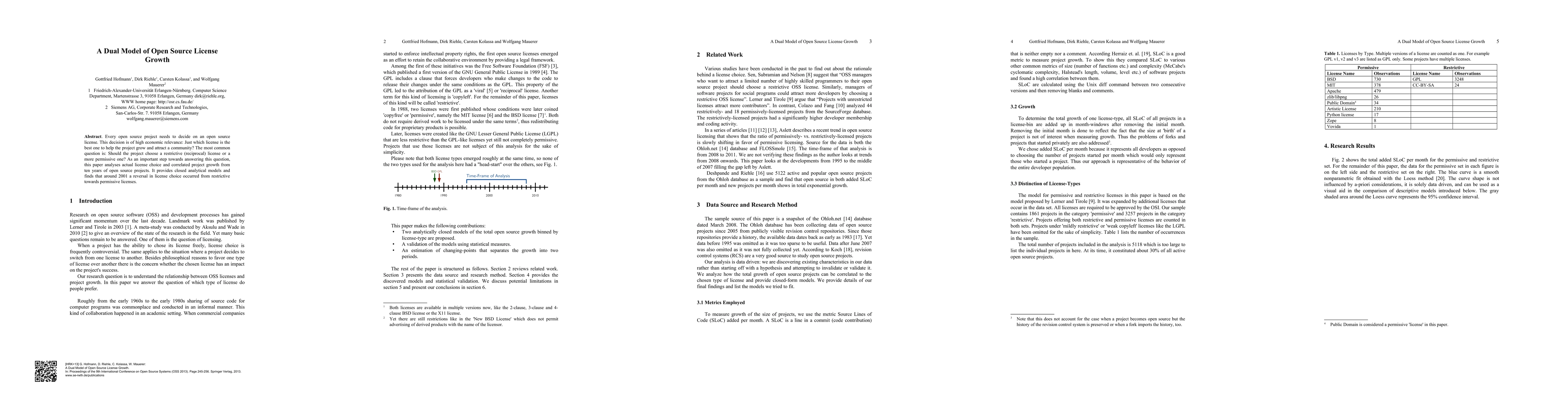 Every open source project needs to decide on an open source license. This decision is of high economic relevance: Just which license is the best one to help the project grow and attract a community? The most common question is: Should the project choose a restrictive (reciprocal) license or a more permissive one? As an important step towards answering this question, this paper analyses actual license choice and correlated project growth from ten years of open source projects. It provides closed analytical models and finds that around 2001 a reversal in license choice occurred from restrictive towards permissive licenses.
