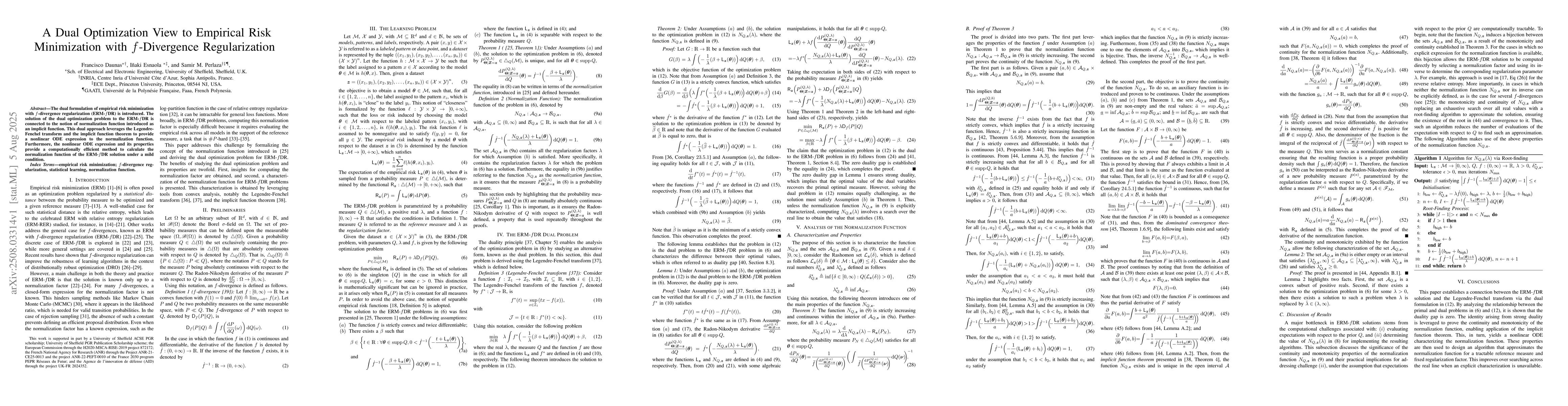The paper presents a dual optimization view to empirical risk minimization with f-divergence regularization, leveraging the Legendre-Fenchel transform and the implicit function theorem to provide a nonlinear ODE expression for the normalization function.