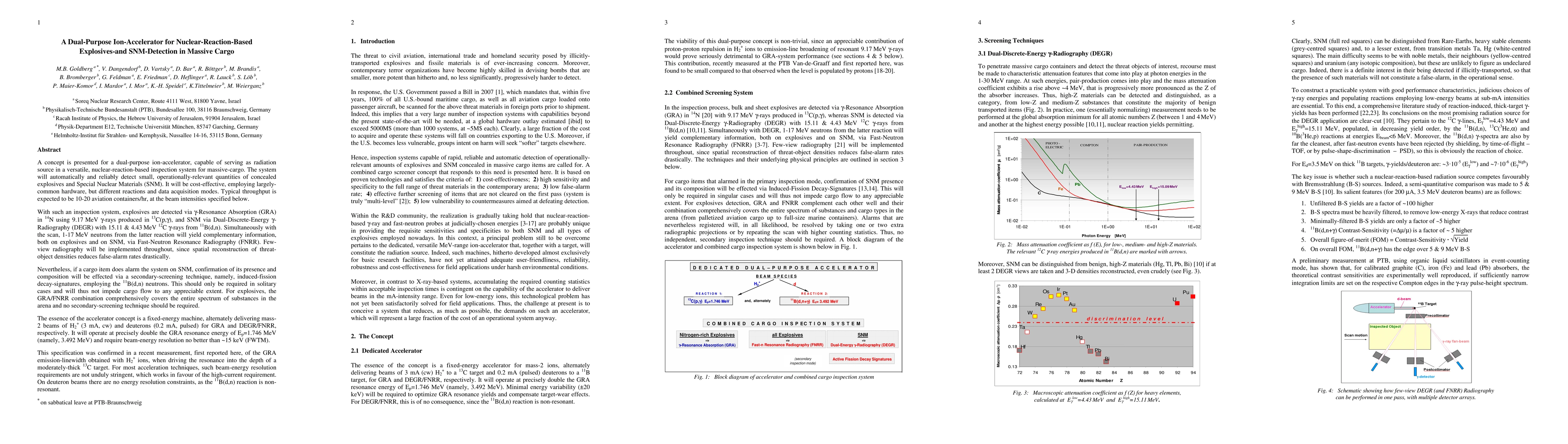 A dual-purpose ion-accelerator concept, capable of serving as radiation source in a versatile, nuclear-reaction-based cargo inspection system, is presented. The system will automatically and reliably detect small, operationally-relevant quantities of concealed explosives and special nuclear materials (SNM). It will be cost-effective, employing largely-common hardware, but different reactions/DAQ-modes. Typical expected throughput is 10-20 aviation containers/hr. PACS: 25.20.Dc; 25.40.Ny; 27.20.+n; 29.27.Fh; 79.77.+g; 89.20.Bb; 89.20.Dd Keywords: Cargo inspection; Nuclear-reaction-based methods; Explosives detection; SNM detection