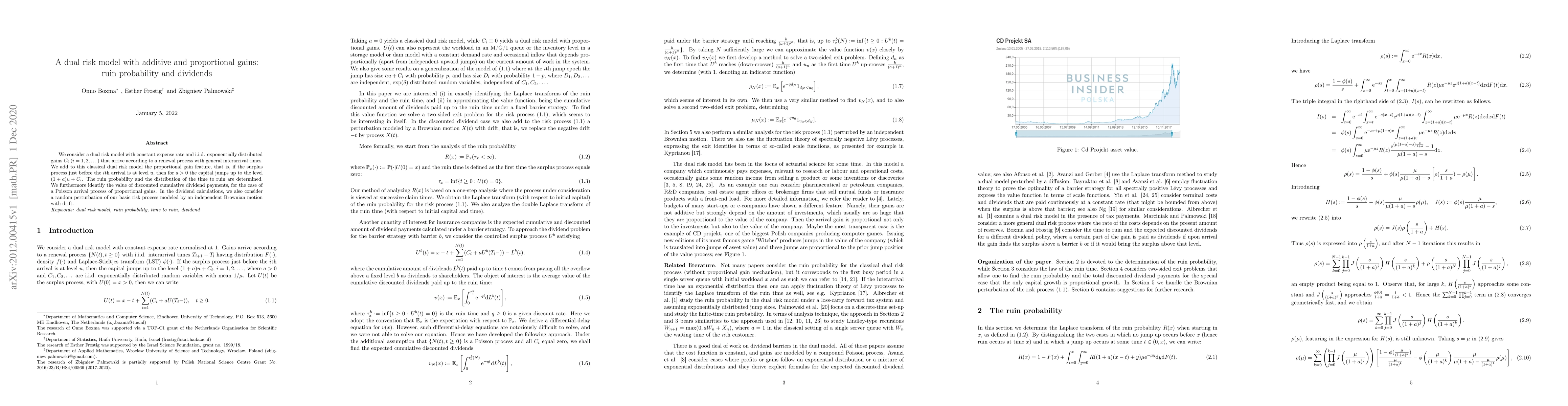 This research paper presents a dual risk model incorporating both additive and proportional gains, analyzing ruin probability and dividend strategies. It derives formulas for ruin probability and time to ruin, and calculates optimal discounted cumulative dividends, considering a Poisson process for proportional gains and a Brownian motion with drift for process perturbation.