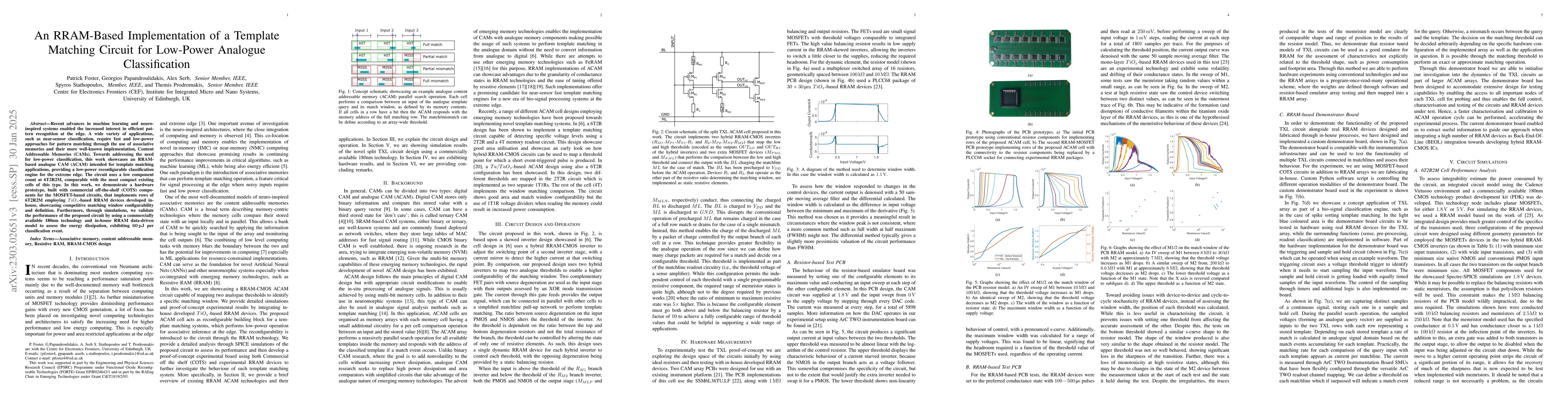 This paper introduces a novel 6T2R2M dual threshold analogue content addressable memory using TiOx memristive devices, demonstrating low energy dissipation of below 100pJ per test, and showing controllability and specificity in its operation.