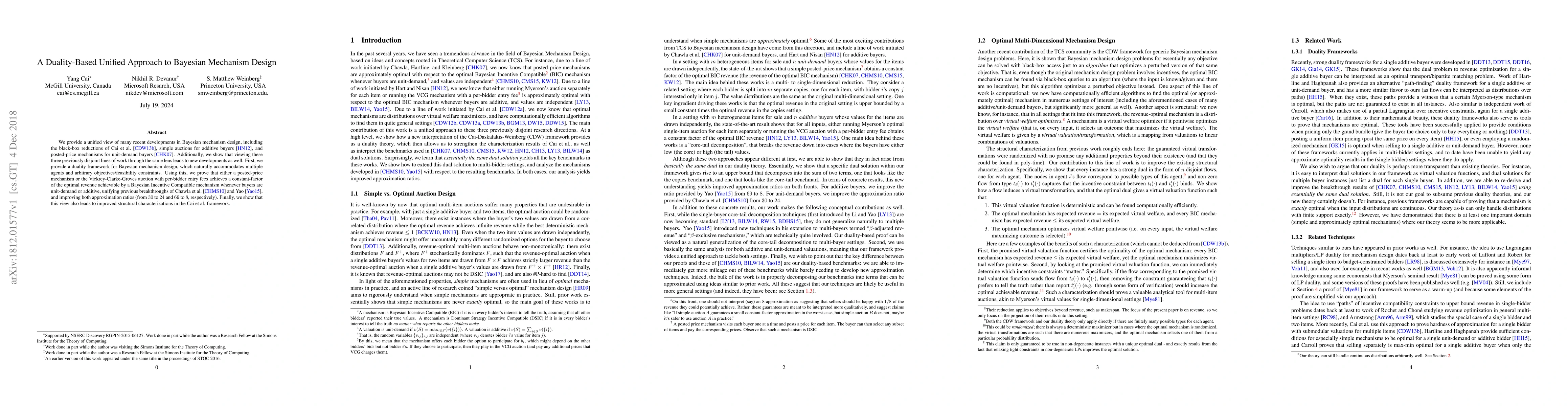 We provide a unified view of many recent developments in Bayesian mechanism design, including the black-box reductions of Cai et al. [CDW13b], simple auctions for additive buyers [HN12], and posted-price mechanisms for unit-demand bidders [CHK07]. Additionally, we show that viewing these three previously disjoint lines of work through the same lens leads to new developments as well. First, we provide a duality framework for Bayesian mechanism design, which naturally accommodates multiple agents and arbitrary objectives/feasibility constraints. Using this, we prove that either a posted-price mechanism or the Vickrey-Clarke-Groves auction with per-bidder entry fees achieves a constant-factor of the optimal revenue achievable by a Bayesian Incentive Compatible mechanism whenever buyers are unit-demand or additive, unifying previous breakthroughs of Chawla et al. [CHMS10] and Yao [Yao15], and improving both approximation ratios (from 30 to 24 and 69 to 8, respectively). Finally, we show that this view also leads to improved structural characterizations in the Cai et al. framework.