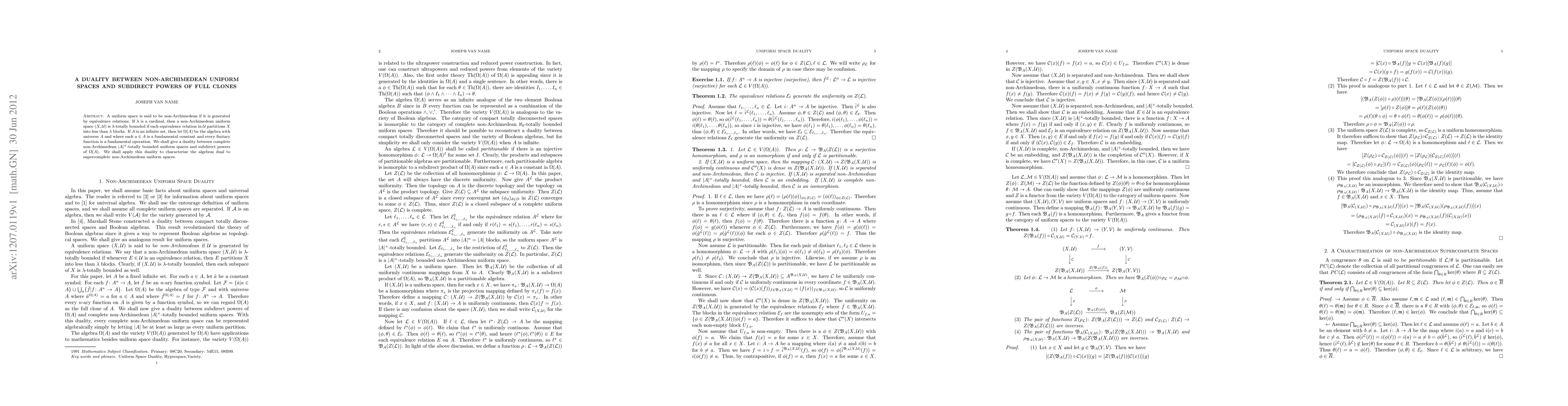 This paper establishes a duality between complete non-Archimedean uniform spaces that are $|A|^{+}$-totally bounded and subdirect powers of $\Omega(A)$, where $\Omega(A)$ is an algebra with universe $A$ and specific fundamental constants and operations. The authors apply this duality to characterize the algebras dual to supercomplete non-Archimedean uniform spaces.