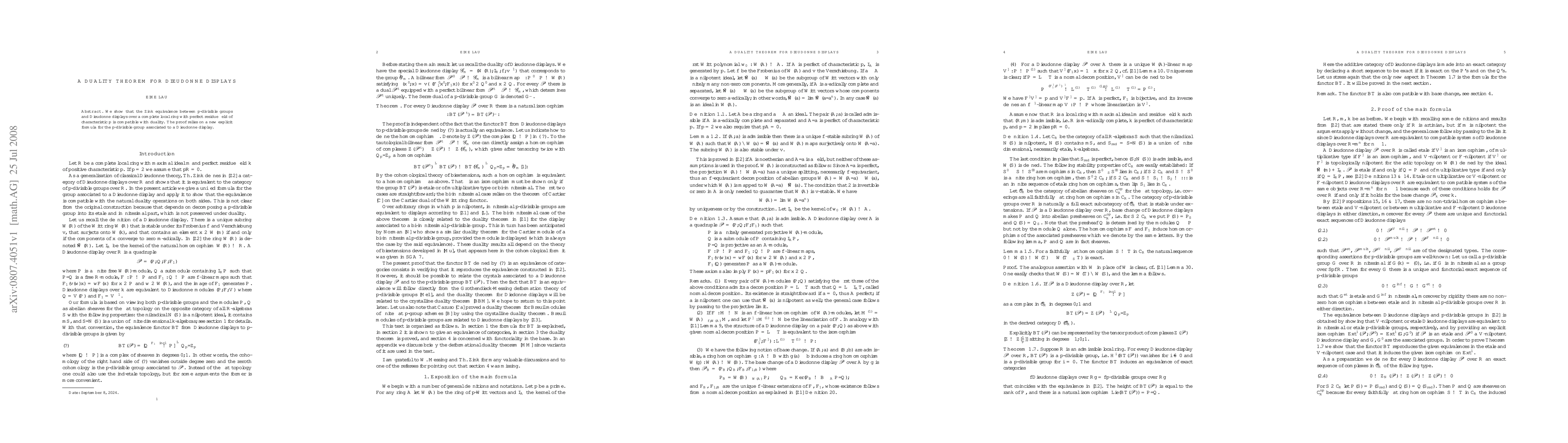 Researchers prove a key theorem for Dieudonne displays, showing compatibility with duality in p-divisible groups over complete local rings, building on an explicit formula for the associated p-divisible group.