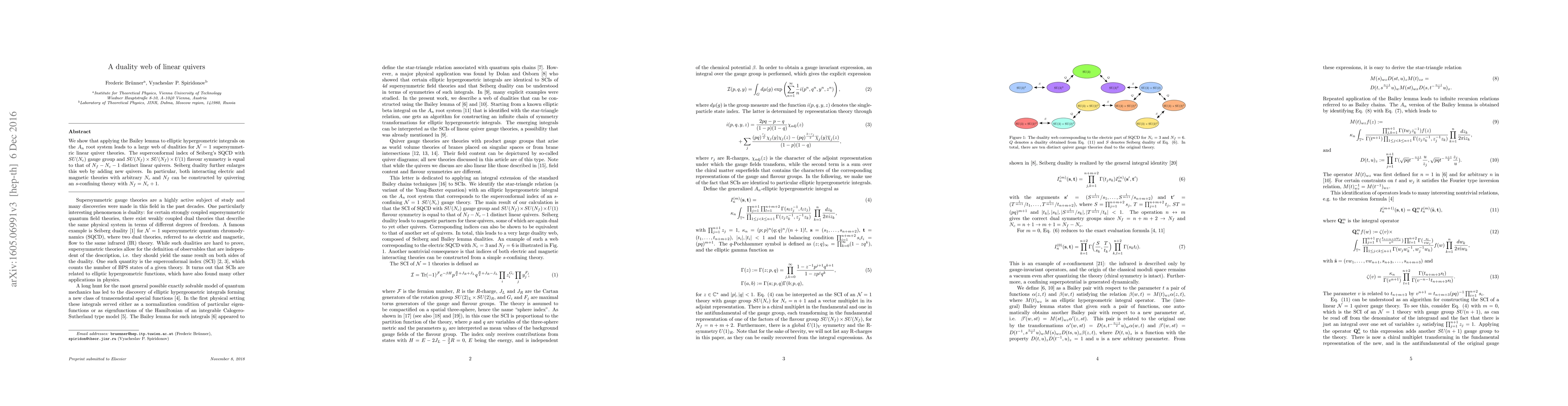 We show that applying the Bailey lemma to elliptic hypergeometric integrals on the $A_n$ root system leads to a large web of dualities for $\mathcal{N} = 1$ supersymmetric linear quiver theories. The superconformal index of Seiberg's SQCD with $SU(N_c)$ gauge group and $SU(N_f)\times SU(N_f)\times U(1)$ flavour symmetry is equal to that of $N_f-N_c-1$ distinct linear quivers. Seiberg duality further enlarges this web by adding new quivers. In particular, both interacting electric and magnetic theories with arbitrary $N_c$ and $N_f$ can be constructed by quivering an $s$-confining theory with $N_f=N_c+1$.