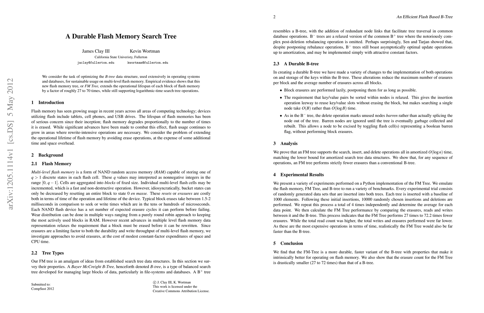 We consider the task of optimizing the B-tree data structure, used extensively in operating systems and databases, for sustainable usage on multi-level flash memory. Empirical evidence shows that this new flash memory tree, or FM Tree, extends the operational lifespan of each block of flash memory by a factor of roughly 27 to 70 times, while still supporting logarithmic-time search tree operations.