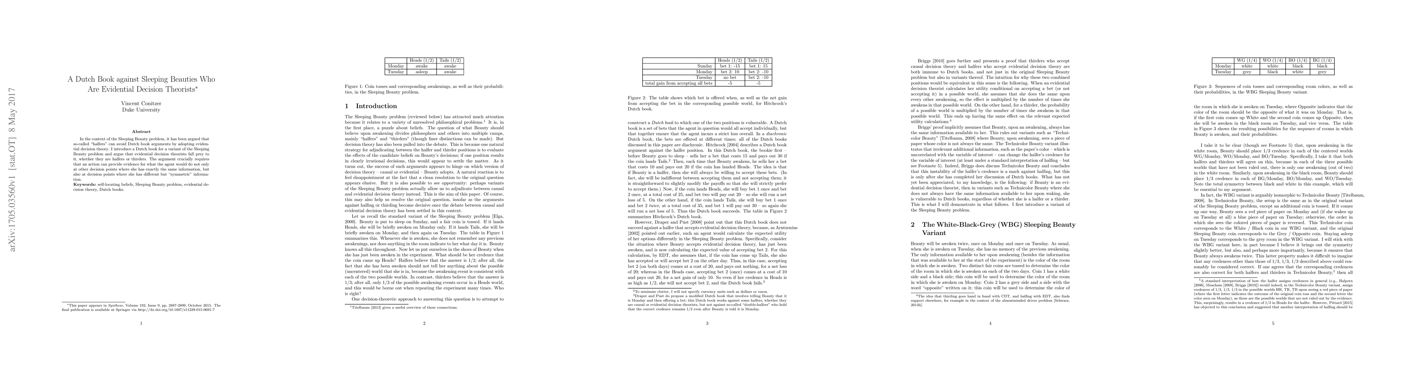 Researchers created a 'Dutch book' against Sleeping Beauty decision-makers who use evidential theory, showing that even halfers and thirders can fall prey to the argument. The Dutch book requires considering information at different decision points for symmetric situations.