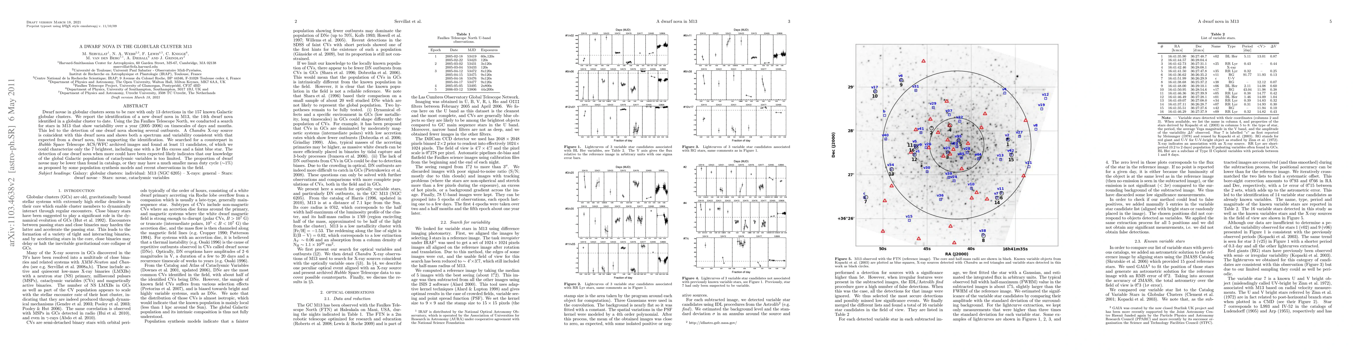 This paper reports the identification of a new dwarf nova in the globular cluster M13, making it the 14th such detection in a globular cluster. The discovery was made using the Faulkes Telescope and confirmed by a coincident Chandra X-ray source, suggesting a lower global population of dwarf novae than previously thought.