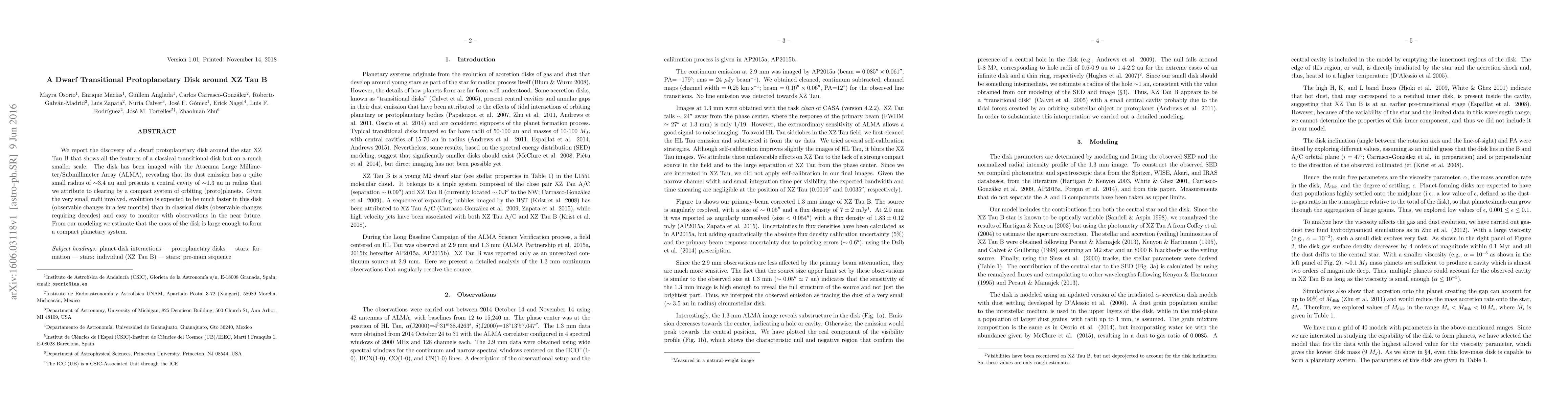 The paper reports the discovery of a small-scale dwarf protoplanetary disk around XZ Tau B, characterized by a central cavity attributed to orbiting (proto)planets, and suggests rapid evolution due to its compact size, making it an ideal candidate for future monitoring. The disk's mass indicates potential for forming a compact planetary system.