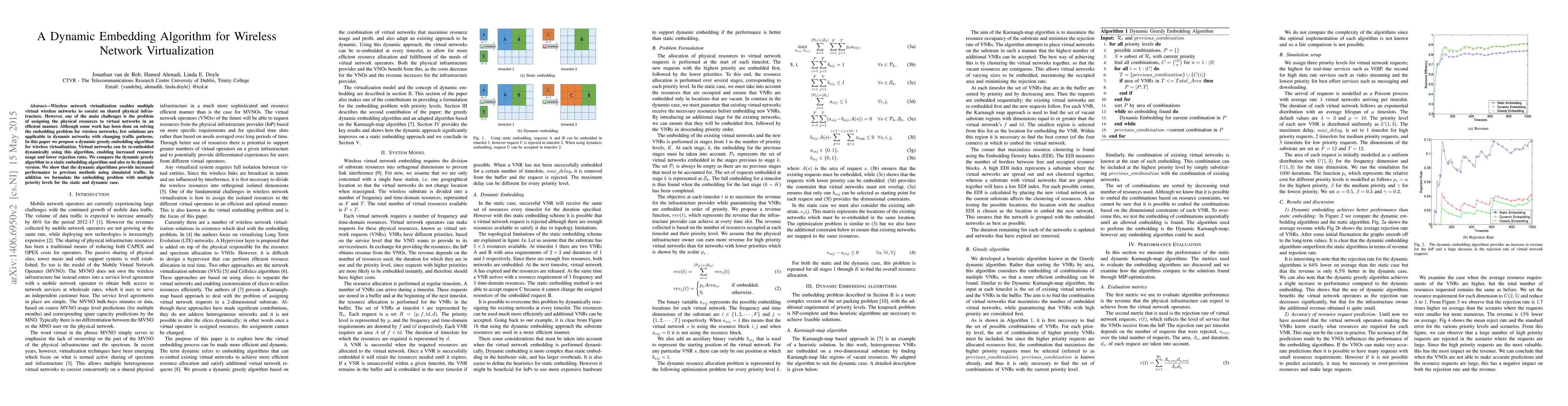 This paper proposes a dynamic greedy embedding algorithm for wireless network virtualization, enabling efficient re-embedding of virtual networks in response to changing traffic patterns. The dynamic algorithm outperforms static methods in resource usage and rejection rates, as demonstrated through simulations.