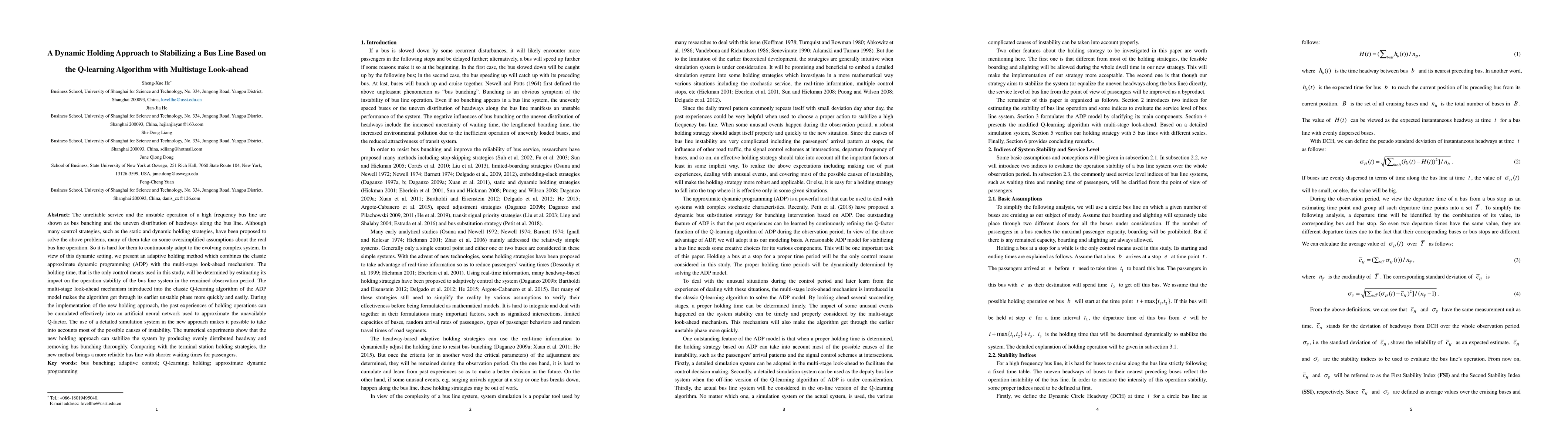 This paper proposes an adaptive holding method using Q-learning with a multistage look-ahead mechanism to stabilize high-frequency bus lines, addressing the issues of bus bunching and uneven headway distribution. The method effectively learns from past experiences and simulates future impacts to determine optimal holding times, resulting in more stable and reliable bus operations.