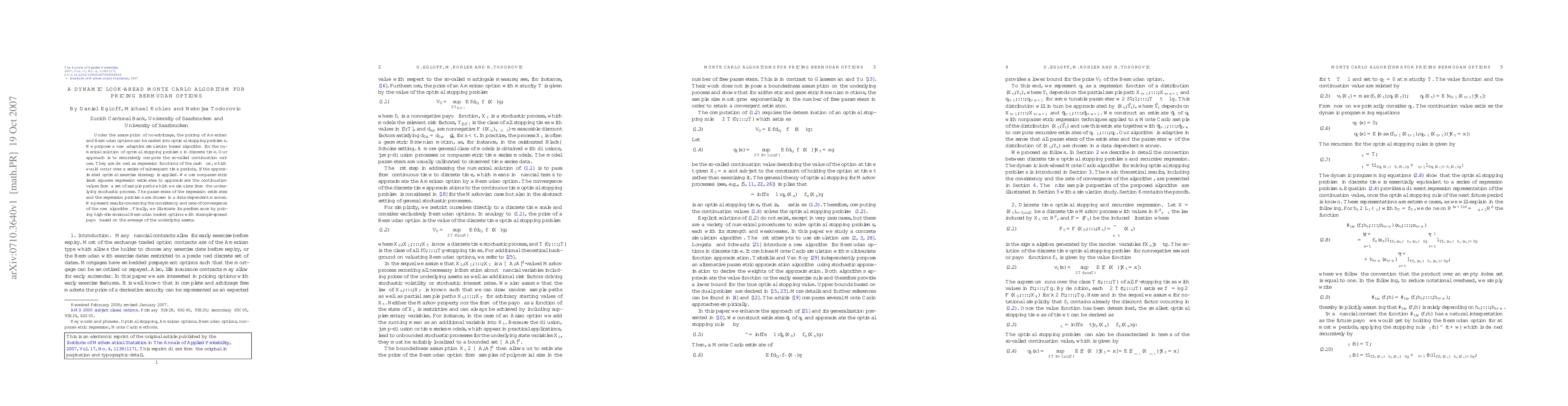 This paper introduces a dynamic look-ahead Monte Carlo algorithm for pricing Bermudan options, employing adaptive simulation and nonparametric least squares regression to recursively compute continuation values. The method shows consistency and convergence, and demonstrates effectiveness in pricing high-dimensional Bermudan basket options.