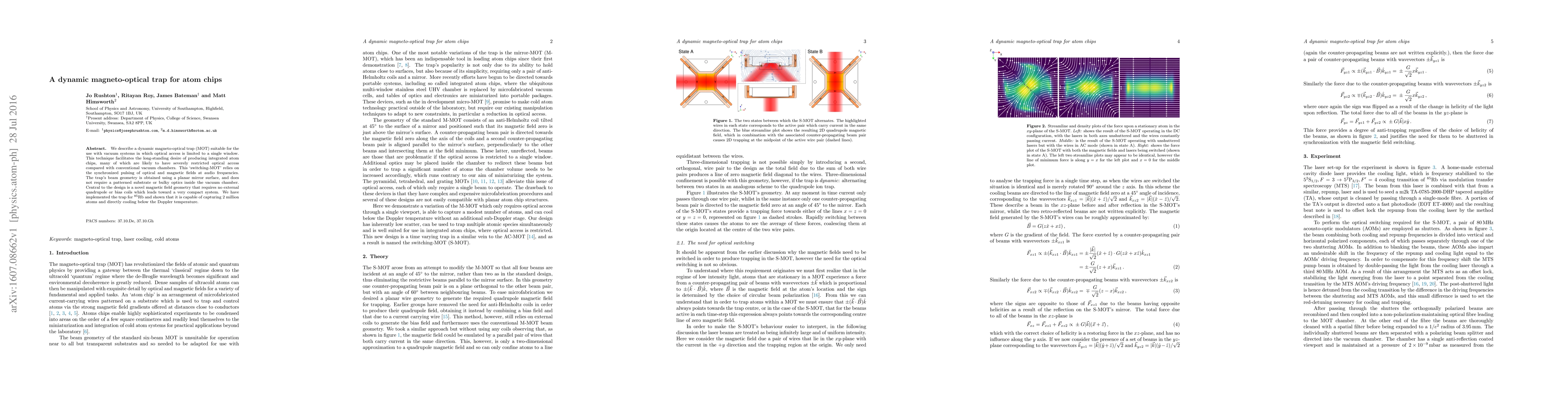 This research introduces a dynamic magneto-optical trap (MOT) for atom chips, utilizing synchronized optical and magnetic field pulsing to operate effectively through a single vacuum chamber window. The design, featuring a planar mirror and a novel magnetic field geometry, captures 2 million $^{85}$Rb atoms and achieves cooling below the Doppler temperature.
