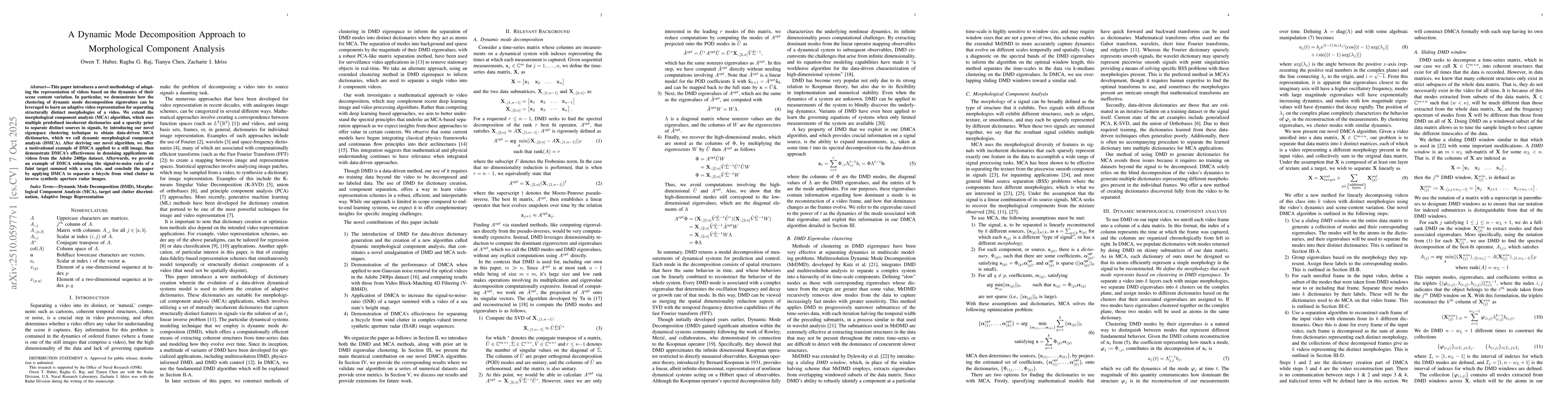 Proposes a hybrid approach combining dynamic mode decomposition with morphological component analysis for improved video segmentation and target imaging in complex environments.