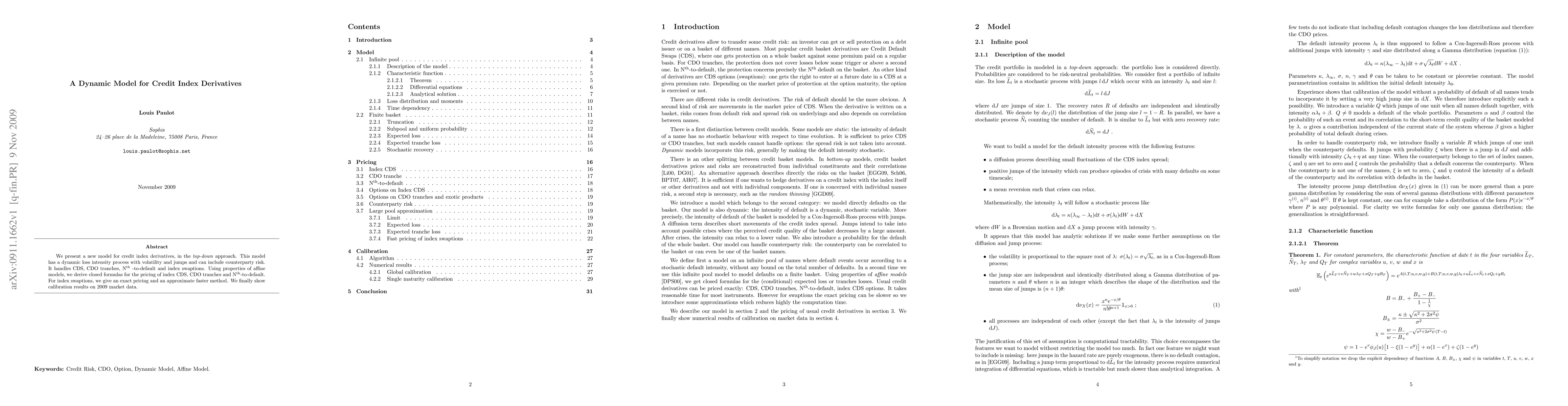 We present a new model for credit index derivatives, in the top-down approach. This model has a dynamic loss intensity process with volatility and jumps and can include counterparty risk. It handles CDS, CDO tranches, Nth-to-default and index swaptions. Using properties of affine models, we derive closed formulas for the pricing of index CDS, CDO tranches and Nth-to-default. For index swaptions, we give an exact pricing and an approximate faster method. We finally show calibration results on 2009 market data.