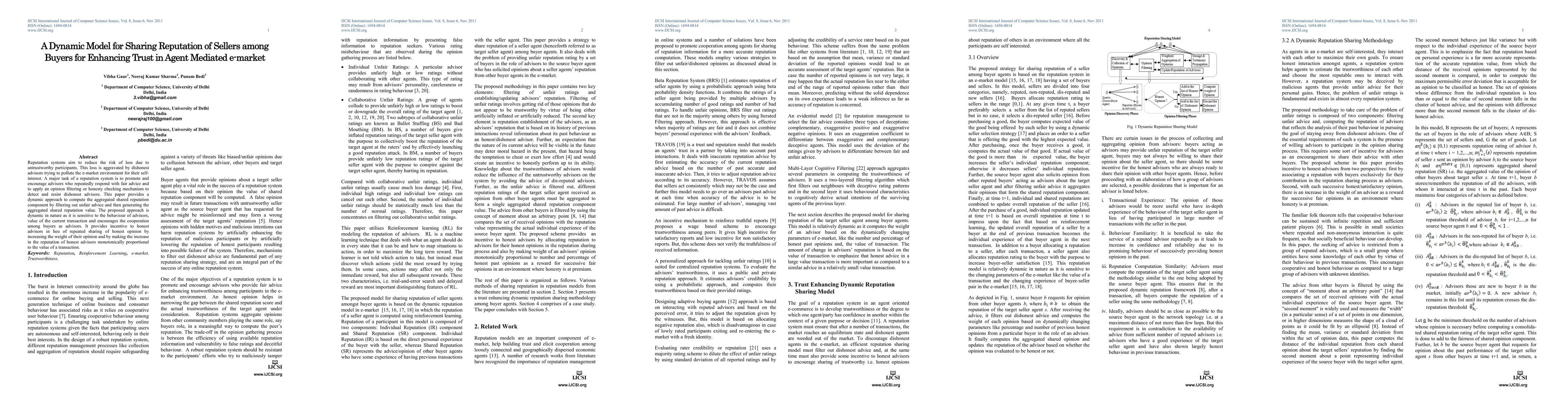 This paper proposes a dynamic model to enhance trust in e-markets by computing shared reputation among sellers through buyers acting as advisors. It aims to filter out dishonest advice and incentivize honest advisors by adjusting their reputation based on transaction values and cooperative behavior.