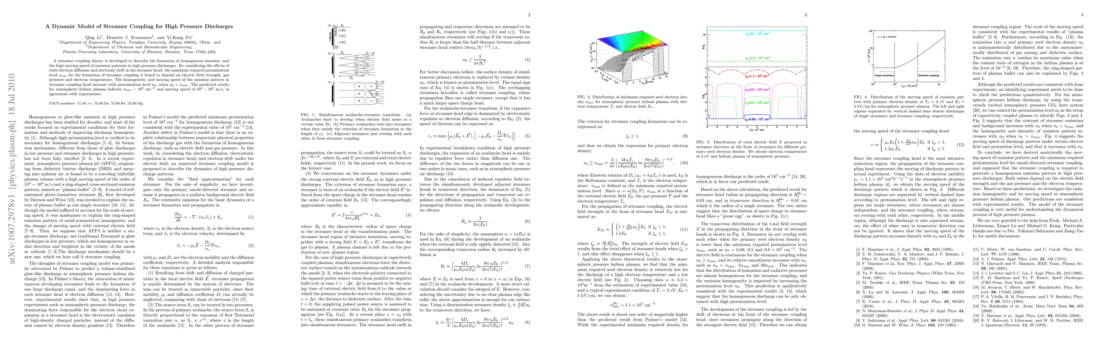 This paper develops a dynamic model to explain the formation of homogenous emission and high-speed emission patterns in high pressure discharges through streamer coupling. The model reveals that the minimum preionization level depends on electric field strength, gas pressure, and electron temperature, and predicts atmospheric helium plasma conditions with a minimum preionization level of $10^5~{\rm cm^{-3}}$ and emission speeds ranging from $10^4$ to $10^6$ m/s, matching experimental data.