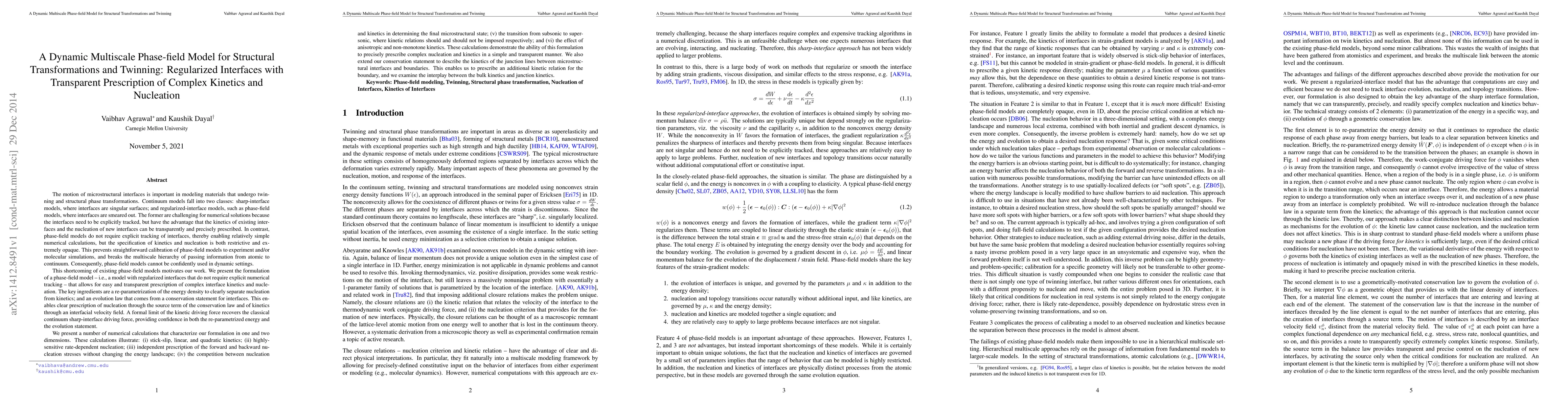 This paper introduces a dynamic multiscale phase-field model for structural transformations and twinning, featuring regularized interfaces that allow for transparent prescription of complex kinetics and nucleation. The model separates nucleation from kinetics through re-parametrization of the energy density and employs an evolution law for interfaces, enabling straightforward numerical calculations and calibration to experimental data.
