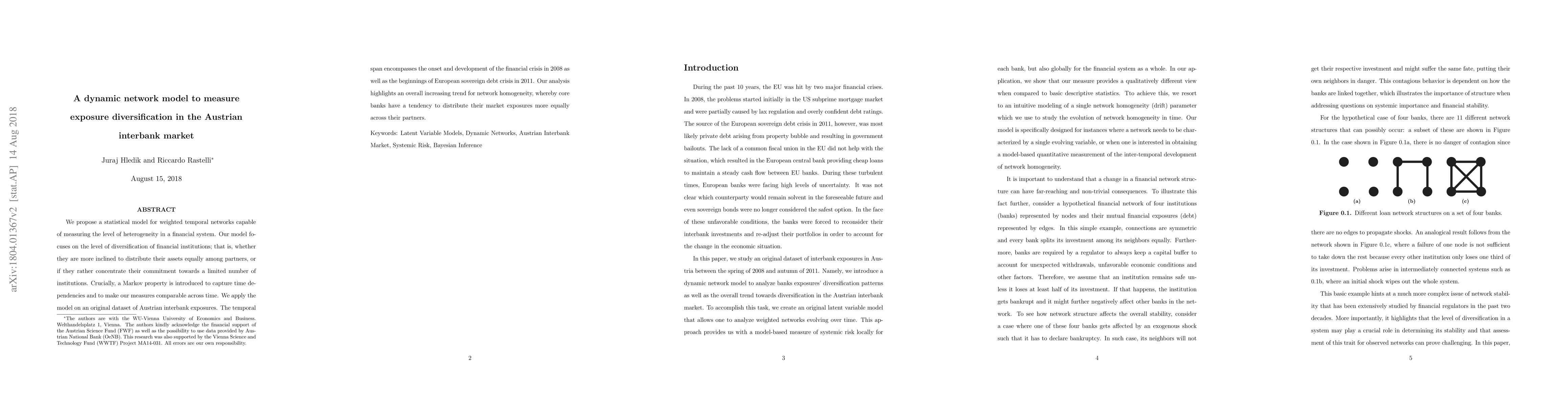 This paper introduces a statistical model for weighted temporal networks to measure exposure diversification in the Austrian interbank market, highlighting an increasing trend in network homogeneity during the financial crisis and European sovereign debt crisis periods. The model employs a Markov property to capture time dependencies and assess changes in diversification strategies of financial institutions.