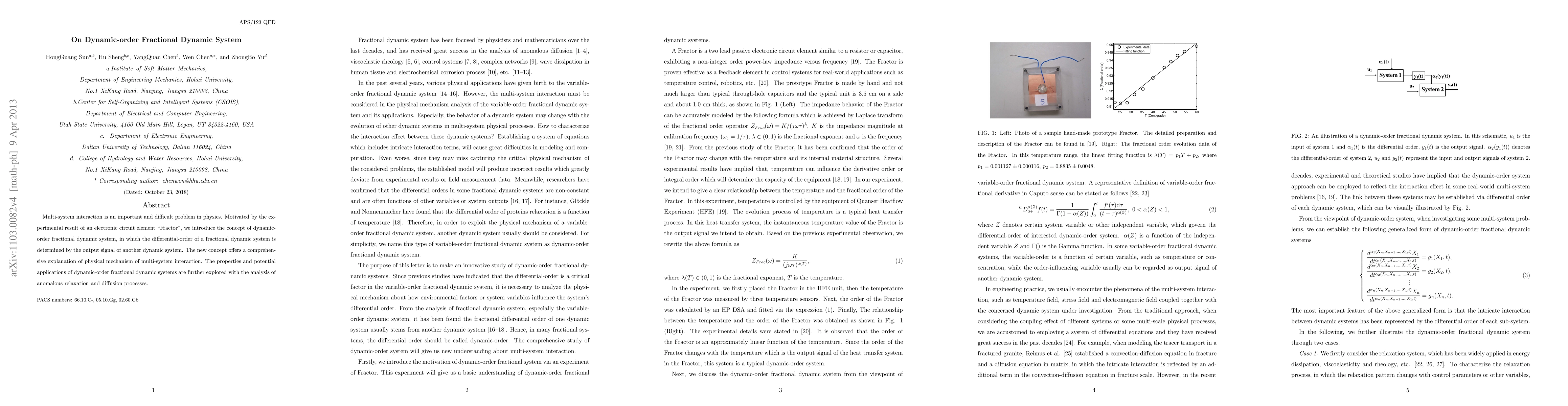 Researchers introduce a new concept called dynamic-order fractional dynamic systems, which explains multi-system interactions in physics by linking differential orders to output signals of other systems. This idea offers a comprehensive understanding of anomalous relaxation and diffusion processes with potential applications in various fields.
