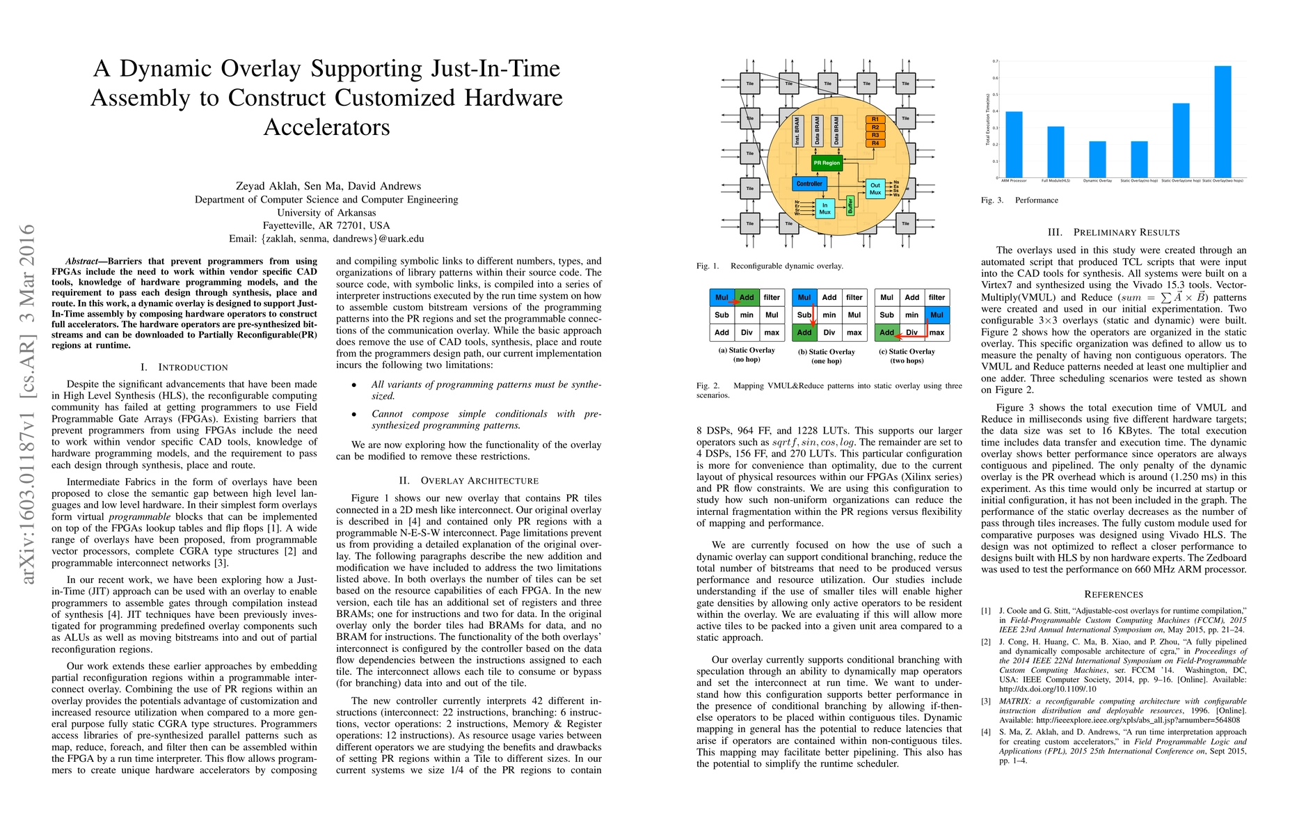 This paper proposes a dynamic overlay system to enable Just-In-Time assembly of customized hardware accelerators on FPGAs, allowing programmers to use pre-synthesized hardware operators without needing to navigate complex CAD tools and synthesis processes. The system downloads these operators to Partially Reconfigurable regions at runtime.