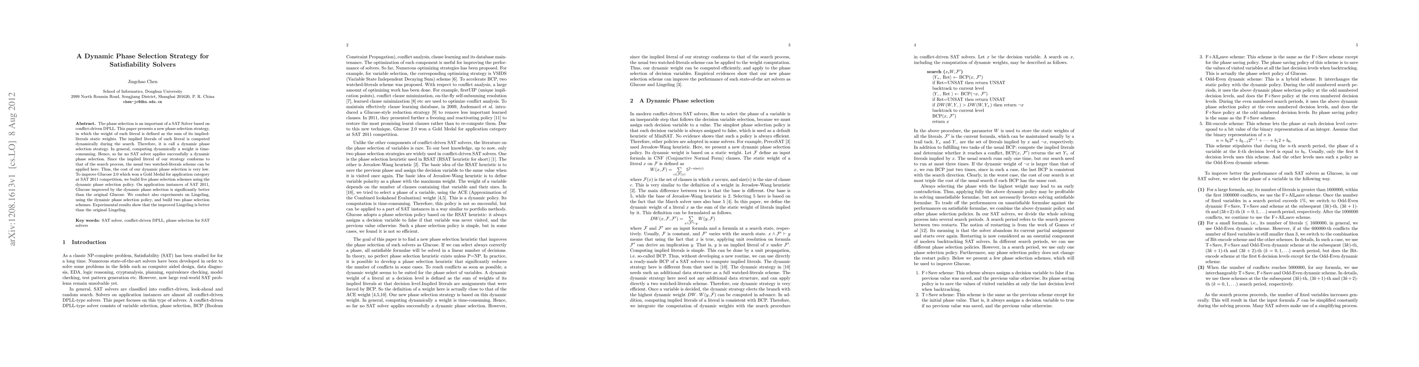 This paper introduces a dynamic phase selection strategy for SAT solvers based on conflict-driven DPLL, where literal weights are computed dynamically during the search. This approach significantly reduces computational costs, leading to improved performance over the original solvers, as demonstrated by enhanced results on SAT 2011 competition instances for both Glucose 2.0 and Lingeling.
