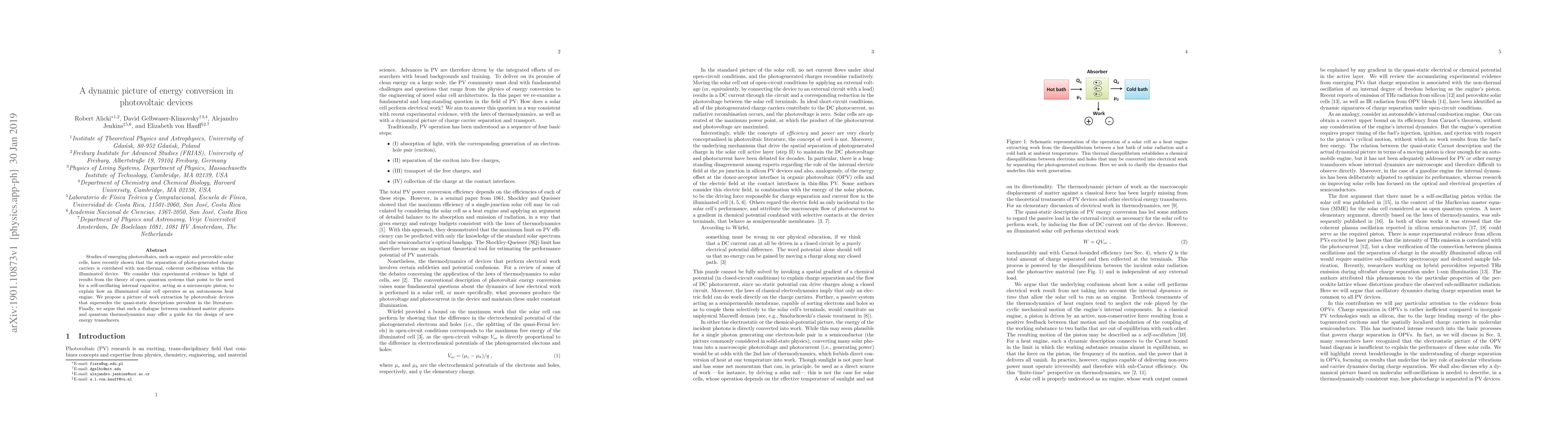 Studies of emerging photovoltaics, such as organic and perovskite solar cells, have recently shown that the separation of photo-generated charge carriers is correlated with non-thermal, coherent oscillations within the illuminated device. We consider this experimental evidence in light of results from the theory of open quantum systems that point to the need for a self-oscillating internal capacitor, acting as a microscopic piston, to explain how an illuminated solar cell operates as an autonomous heat engine. We propose a picture of work extraction by photovoltaic devices that supersedes the quasi-static descriptions prevalent in the literature. Finally, we argue that such a dialogue between condensed matter physics and quantum thermodynamics may offer a guide for the design of new energy transducers.