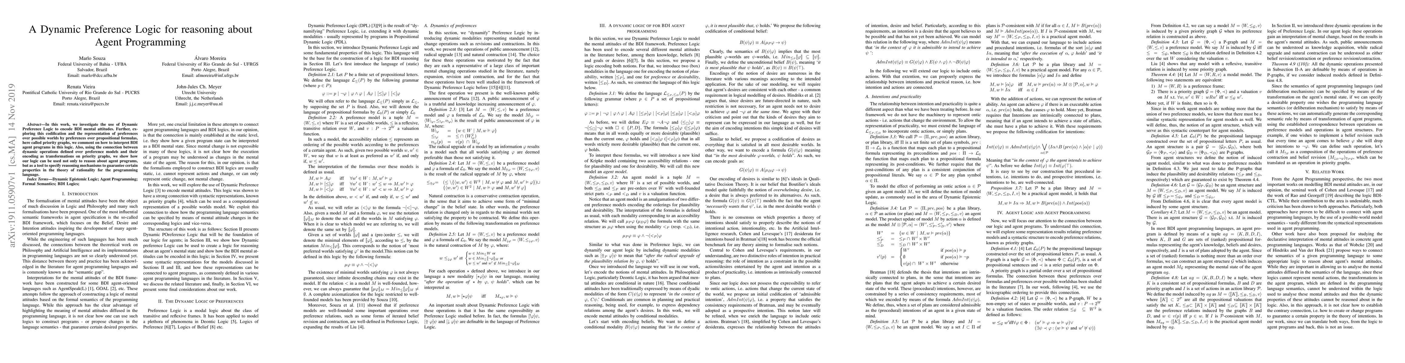 This paper explores Dynamic Preference Logic for encoding BDI (belief, desire, intention) attitudes in agent programming, utilizing priority graphs to represent preferences over possible worlds. It demonstrates how this logic can specify reasoning mechanisms to enforce rationality properties in agent programs.