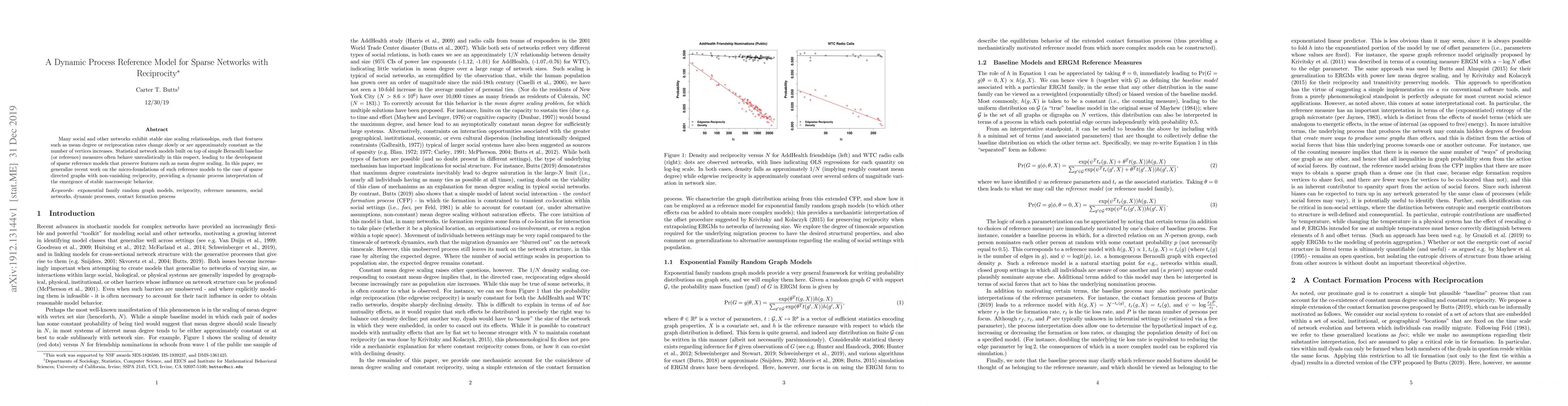 Many social and other networks exhibit stable size scaling relationships, such that features such as mean degree or reciprocation rates change slowly or are approximately constant as the number of vertices increases. Statistical network models built on top of simple Bernoulli baseline (or reference) measures often behave unrealistically in this respect, leading to the development of sparse reference models that preserve features such as mean degree scaling. In this paper, we generalize recent work on the micro-foundations of such reference models to the case of sparse directed graphs with non-vanishing reciprocity, providing a dynamic process interpretation of the emergence of stable macroscopic behavior.