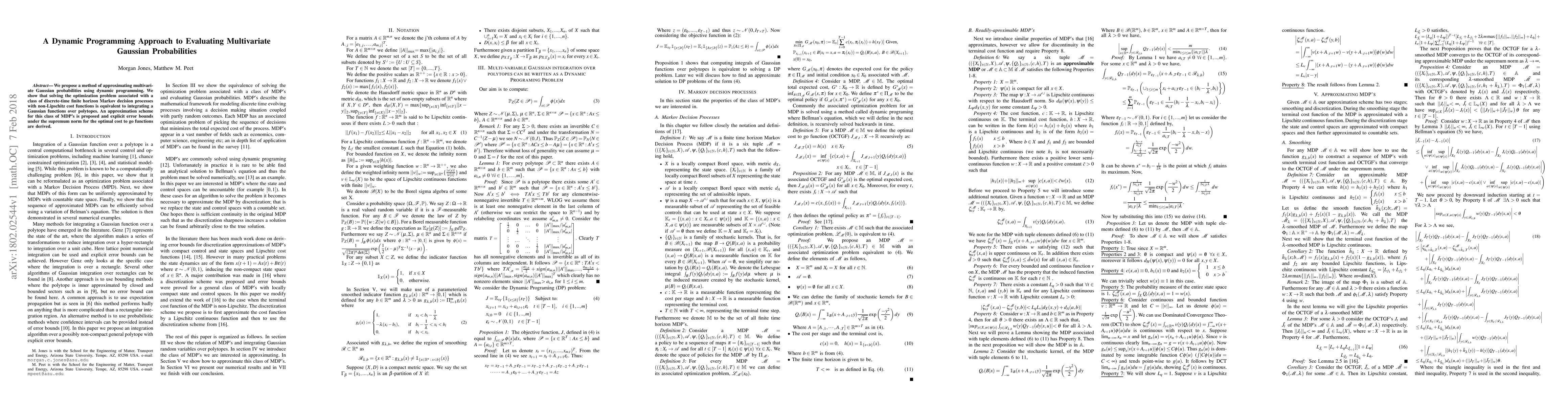 We propose a method of approximating multivariate Gaussian probabilities using dynamic programming. We show that solving the optimization problem associated with a class of discrete-time finite horizon Markov decision processes with non-Lipschitz cost functions is equivalent to integrating a Gaussian functions over polytopes. An approximation scheme for this class of MDPs is proposed and explicit error bounds under the supremum norm for the optimal cost to go functions are derived.