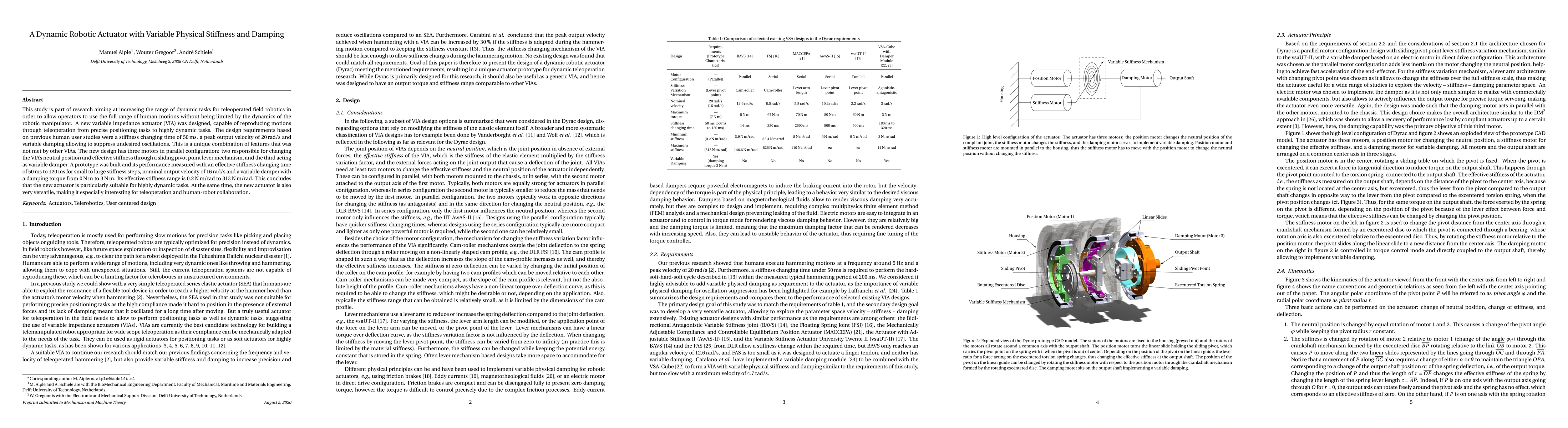 A new variable impedance actuator was designed to enable robots to perform dynamic tasks with varying stiffness and damping, allowing for more versatile teleoperation and human-robot collaboration.