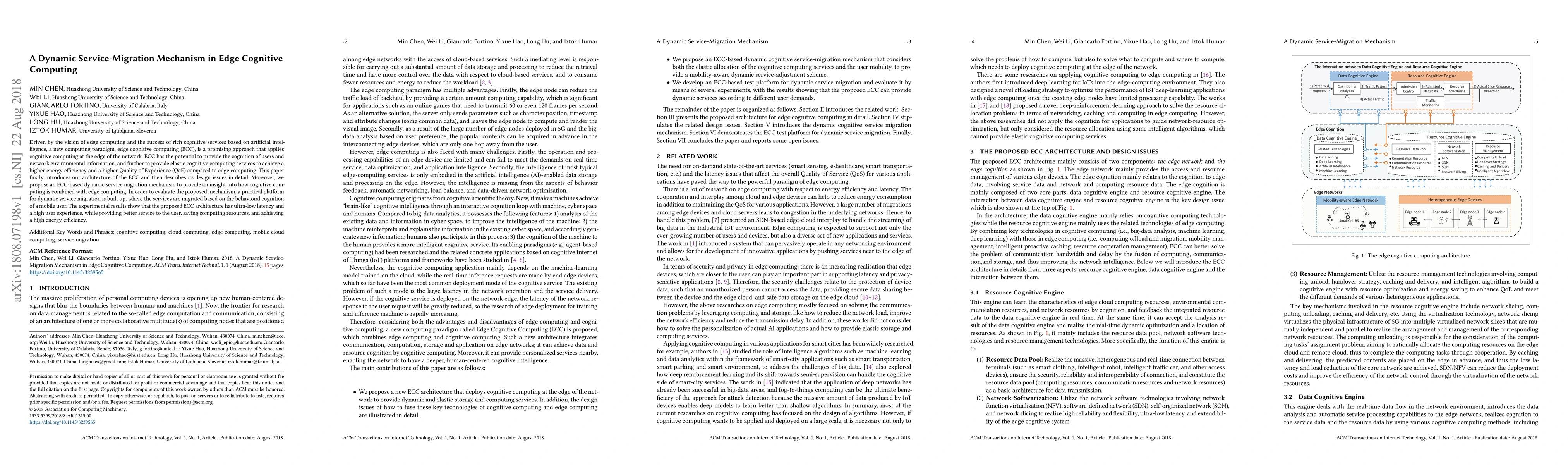 This paper introduces an edge cognitive computing (ECC) architecture, combining cognitive computing with edge computing to enhance energy efficiency and user experience. It proposes a dynamic service-migration mechanism that leverages user behavior cognition, demonstrated through a practical platform, achieving ultra-low latency and high Quality of Experience.