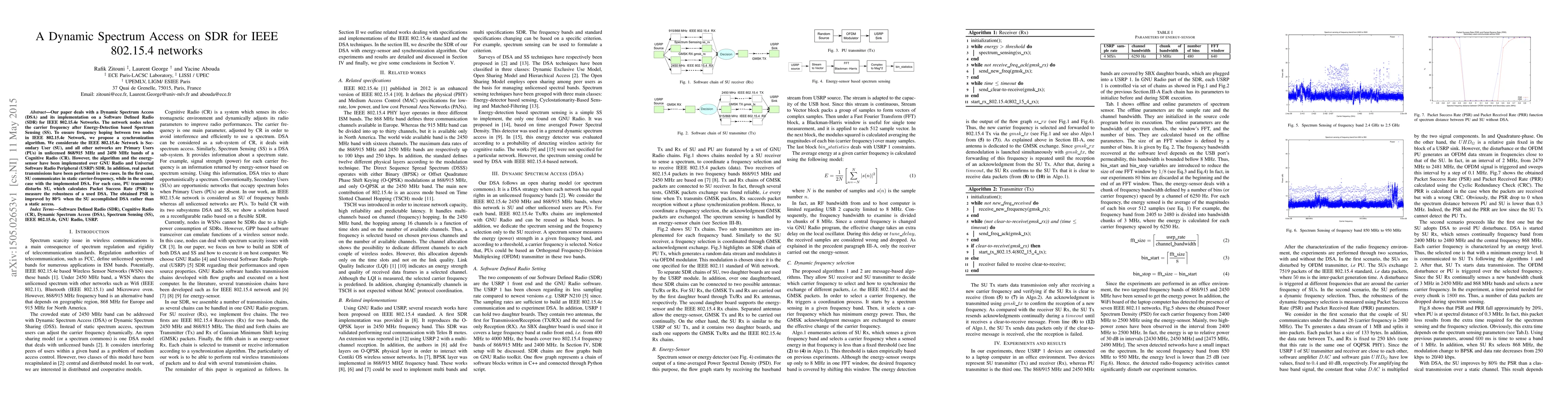 This paper proposes a Dynamic Spectrum Access (DSA) implementation on a Software Defined Radio (SDR) for IEEE 802.15.4e networks, utilizing Energy-Detection based Spectrum Sensing. The study shows an 80% improvement in Packet Success Rate (PSR) when DSA is employed compared to static frequency access, demonstrating the robustness of the proposed synchronization algorithm.