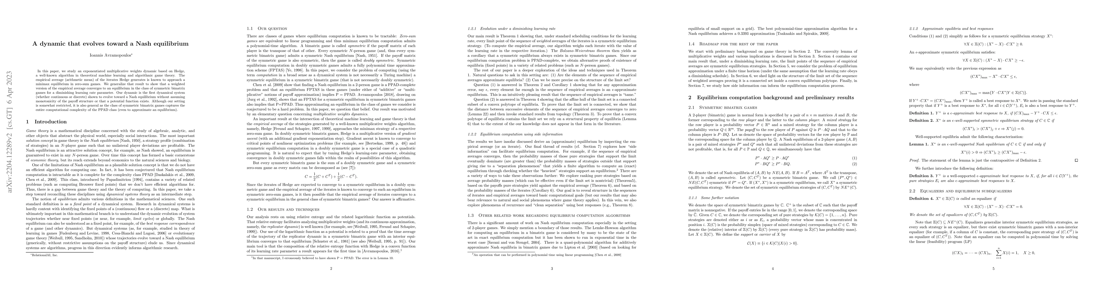 This paper generalizes the Hedge algorithm to show that a weighted version of its empirical average converges to a Nash equilibrium in symmetric bimatrix games, without requiring monotonicity or a potential function, and captures the complexity of the PPAD class. The dynamic system presented is the first to evolve toward a Nash equilibrium under these conditions.