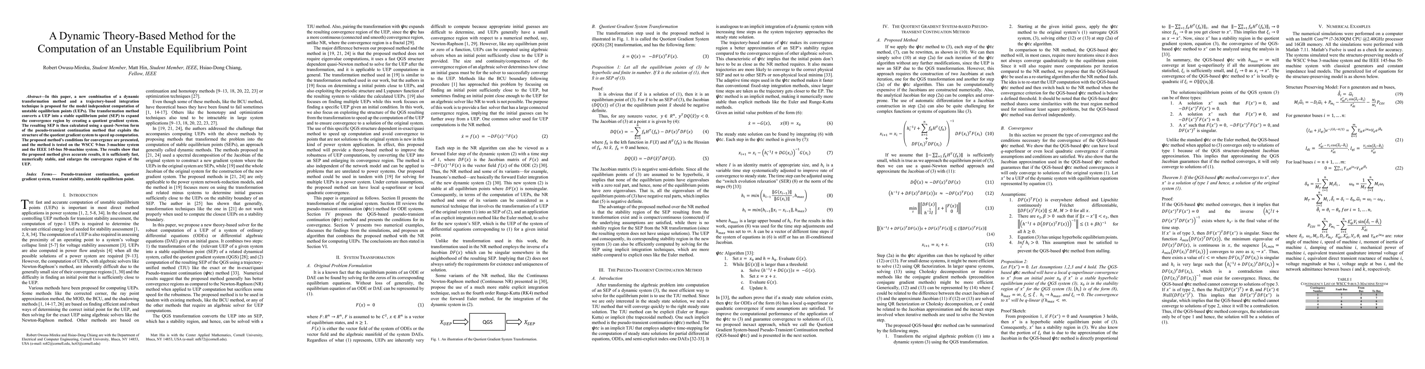 In this paper, a new combination of a dynamic transformation method and a trajectory-based integration technique is proposed for the model independent computation of unstable equilibrium points (UEPs). The transformation method converts a UEP into a stable equilibrium point (SEP) to expand the convergence region by creating a quotient gradient system. The resulting SEP is then calculated using a quasi-Newton form of the pseudo-transient continuation method that exploits the structure of the quotient gradient system to speed up computation. The proposed method's conditions for convergence are presented, and the method is tested on the WSCC 9-bus 3-machine system and the IEEE 145-bus 50-machine system. The results show that the proposed method gives accurate results, it is sufficiently fast, numerically stable, and enlarges the convergence region of the UEP.