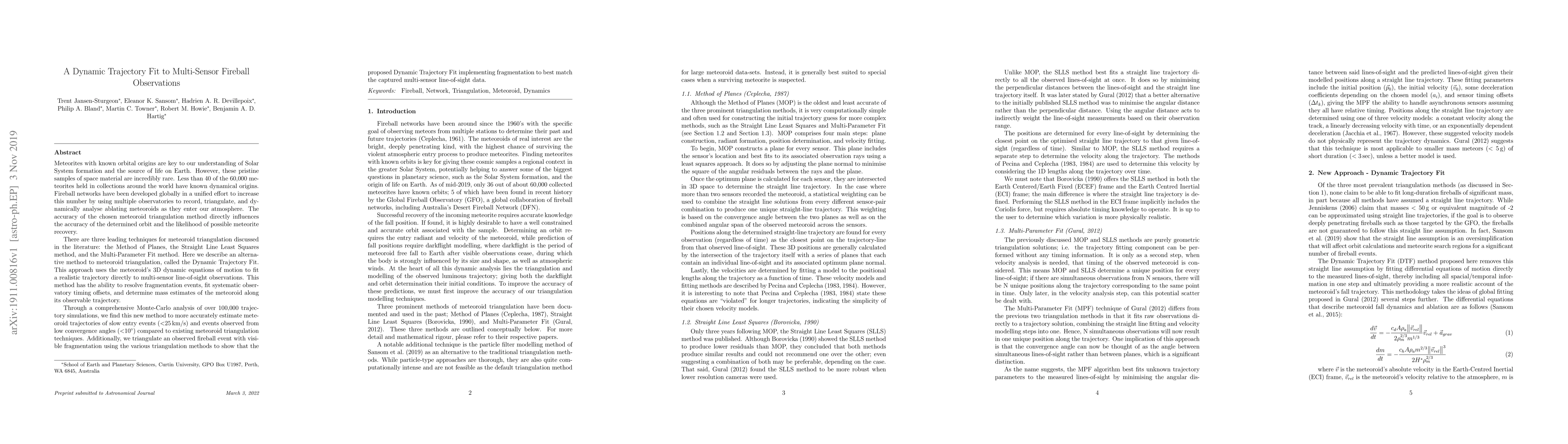 A new method called Dynamic Trajectory Fit improves accuracy in tracking meteoroids' trajectories from multiple sensor observations, especially for slow-moving and low-convergence-angle events.