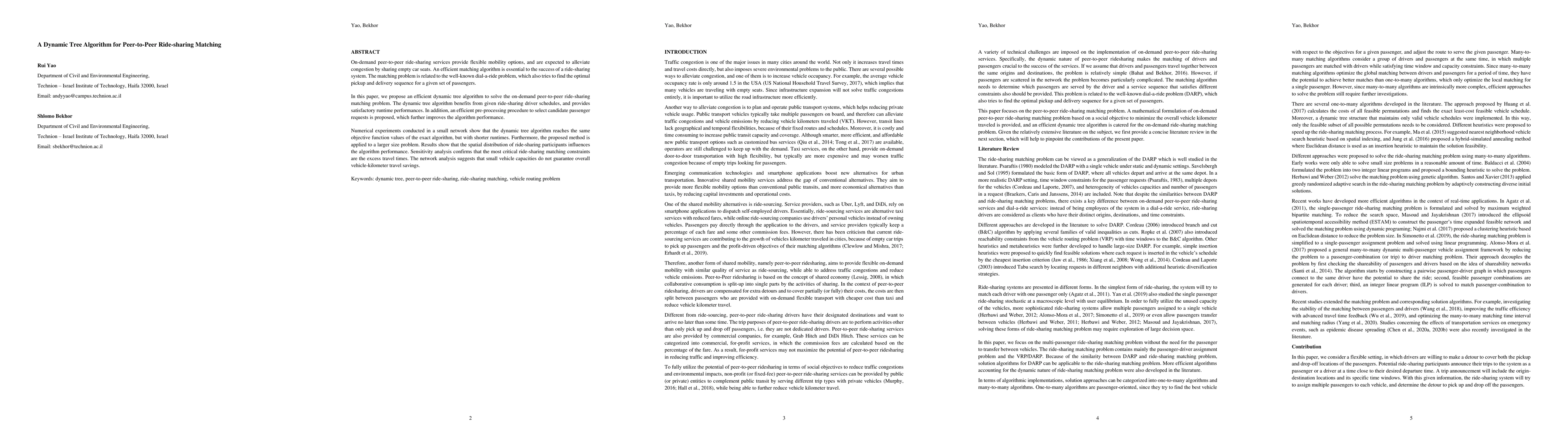 This paper proposes a dynamic tree algorithm for solving the on-demand peer-to-peer ride-sharing matching problem, leveraging driver schedules and a pre-processing procedure to enhance performance. Experiments show comparable results to exact algorithms but with shorter runtimes, highlighting the influence of spatial distribution and travel time constraints on algorithm efficiency.