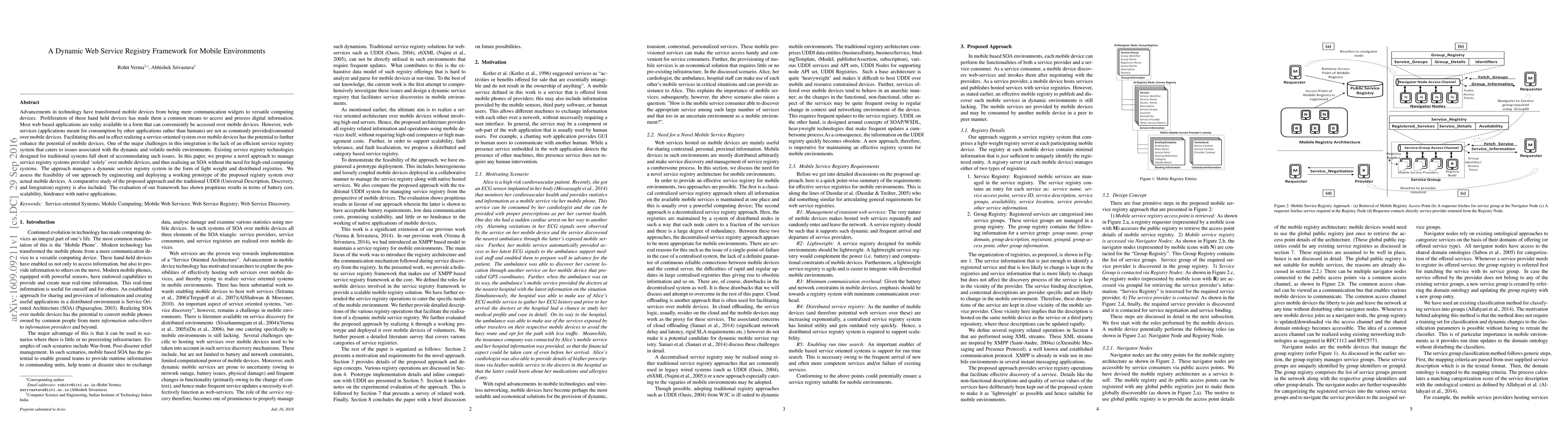 This paper proposes a dynamic web service registry framework tailored for mobile environments, addressing the lack of efficient service registry systems for mobile devices. The proposed framework utilizes lightweight, distributed registries to manage services, and a prototype was deployed to demonstrate its feasibility, showing promising results in battery efficiency, scalability, and minimal interference with native applications.