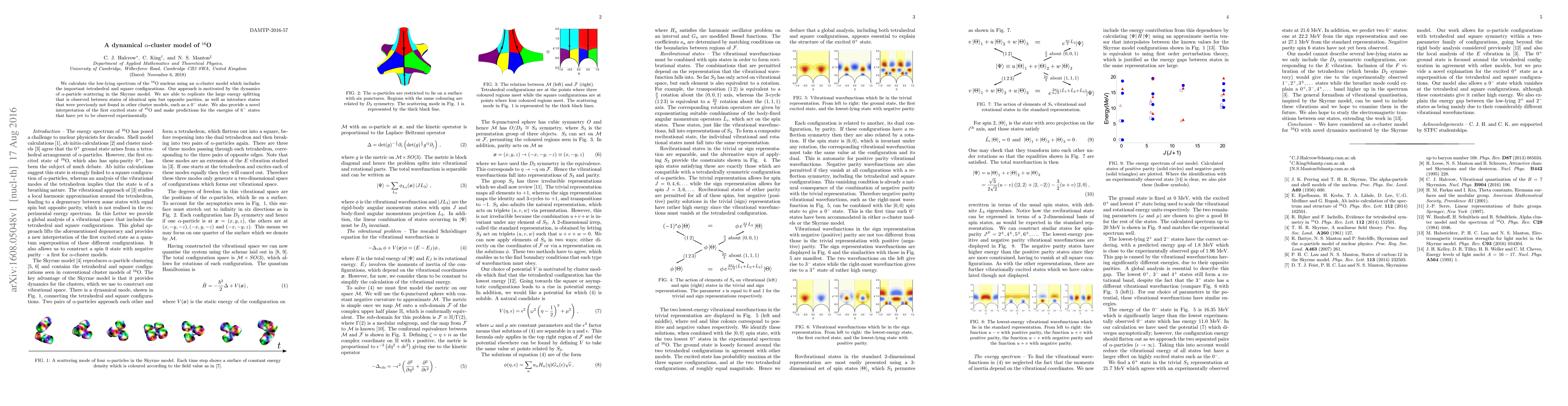 We calculate the low-lying spectrum of the $^{16}$O nucleus using an $\alpha$-cluster model which includes the important tetrahedral and square configurations. Our approach is motivated by the dynamics of $\alpha$-particle scattering in the Skyrme model. We are able to replicate the large energy splitting that is observed between states of identical spin but opposite parities, as well as introduce states that were previously not found in other cluster models, such as a $0^-$ state. We also provide a novel interpretation of the first excited state of $^{16}$O and make predictions for the energies of $6^-$ states that have yet to be observed experimentally.