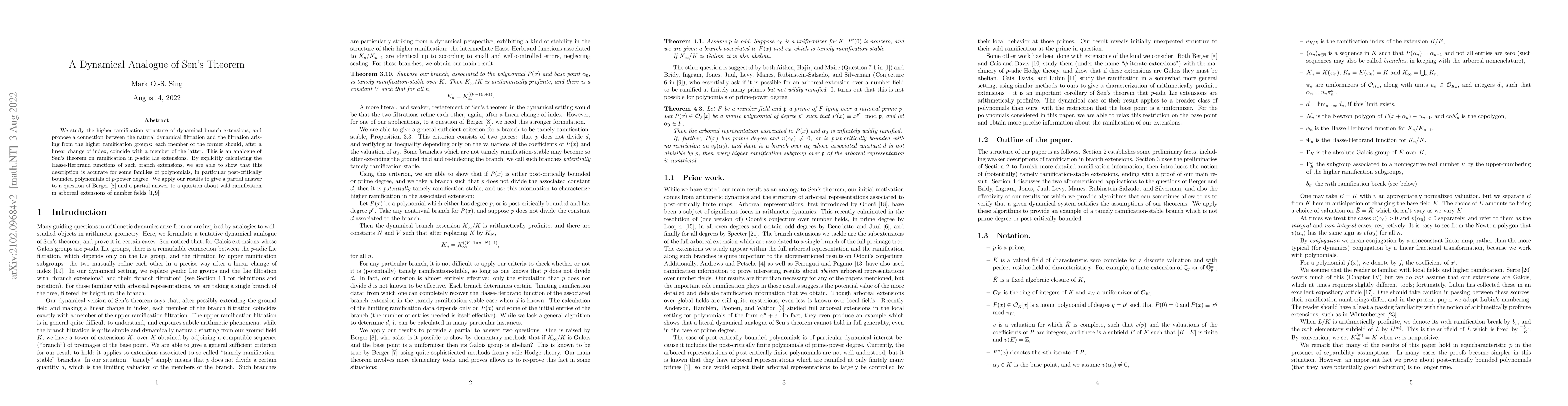 This paper establishes a dynamical analogue of Sen's theorem by linking the natural dynamical filtration with the higher ramification groups in dynamical branch extensions. The authors demonstrate this connection through calculations of Hasse-Herbrand functions for post-critically bounded polynomials, providing insights into wild ramification in arboreal extensions.