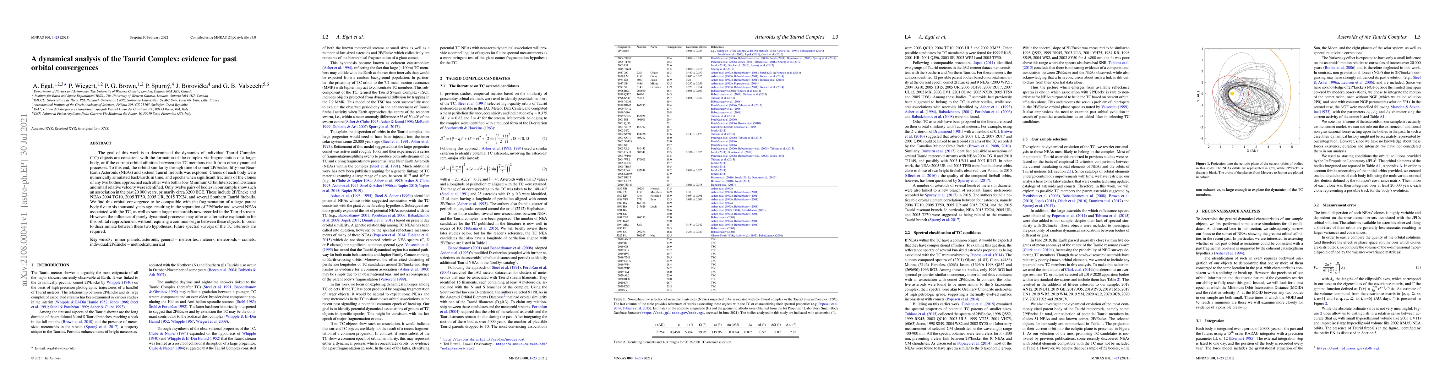 A. Egal, P. G. Brown, P. Wiegert