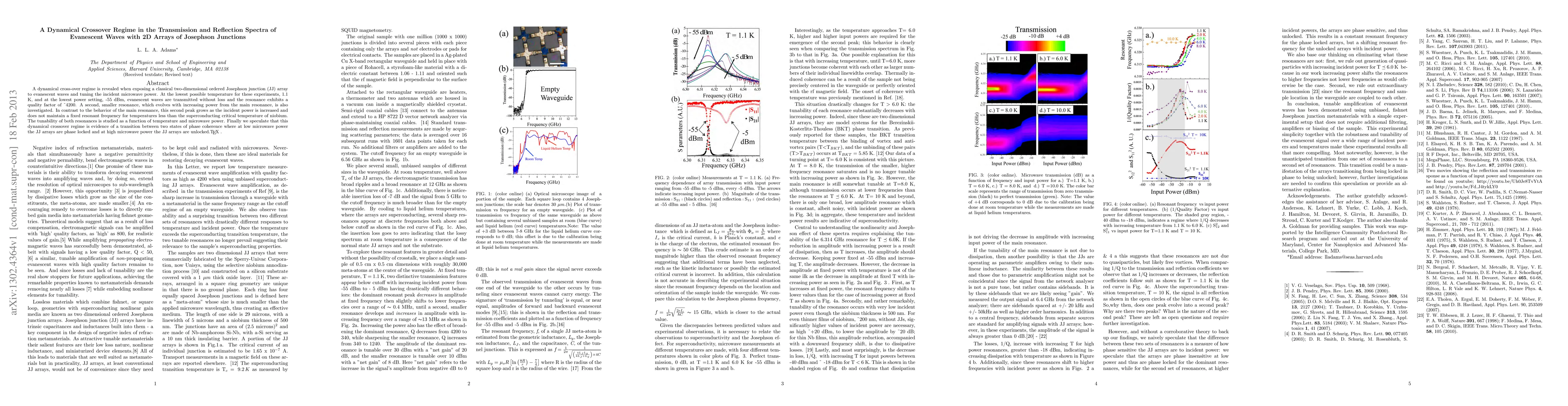 A dynamical cross-over regime is revealed when exposing a classical two-dimensional ordered Josephson junction (JJ) array to evanescent waves and tuning the incident microwave power. At the lowest possible temperature for these experiments, 1.1 K, and at the lowest power setting, -55 dBm, evanescent waves are transmitted without loss and the resonance exhibits a quality factor of ~ 4200. A second, smaller resonance, which evolves with increasing power from the main resonance, is also investigated. In contrast to the behavior of the main resonance, this second peak grows as the incident power is increased and does not maintain a fixed resonant frequency for temperatures less than the superconducting critical temperature of niobium. The tunability of both resonances is studied as a function of temperature and microwave power. Finally we speculate that this dynamical crossover regime is evidence of a transition between two states of phase coherence where at low microwave power the JJ arrays are phase locked and at high microwave power the JJ arrays are unlocked.