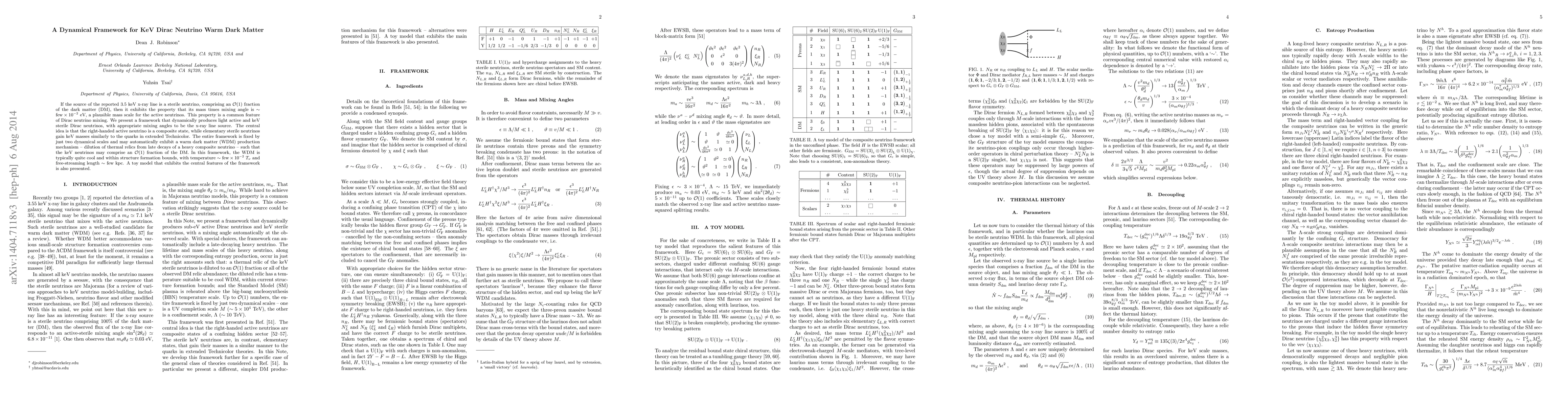 If the source of the reported $3.5$ keV x-ray line is a sterile neutrino, comprising an $\mathcal{O}(1)$ fraction of the dark matter (DM), then it exhibits the property that its mass times mixing angle is $\sim \mbox{few} \times 10^{-2}$ eV, a plausible mass scale for the active neutrinos. This property is a common feature of Dirac neutrino mixing. We present a framework that dynamically produces light active and keV sterile Dirac neutrinos, with appropriate mixing angles to be the x-ray line source. The central idea is that the right-handed active neutrino is a composite state, while elementary sterile neutrinos gain keV masses similarly to the quarks in extended Technicolor. The entire framework is fixed by just two dynamical scales and may automatically exhibit a warm dark matter (WDM) production mechanism -- dilution of thermal relics from late decays of a heavy composite neutrino -- such that the keV neutrinos may comprise an $\mathcal{O}(1)$ fraction of the DM. In this framework, the WDM is typically quite cool and within structure formation bounds, with temperature $\sim \mbox{few}\times 10^{-2}~T_\nu$ and free-streaming length $\sim$ few kpc. A toy model that exhibits the central features of the framework is also presented.