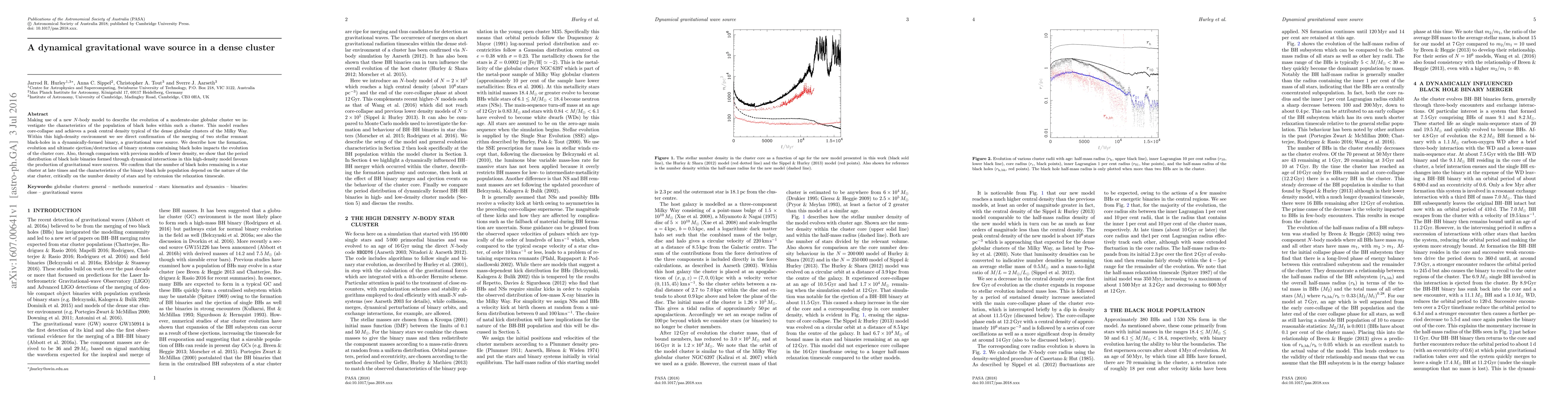 This study uses a new N-body model to explore the evolution of a dense globular cluster, revealing the formation and merging of black hole binaries as significant gravitational wave sources. The model shows that high-density environments favor the production of such sources, impacting the cluster's core evolution and highlighting the role of star density in the remaining black hole population.