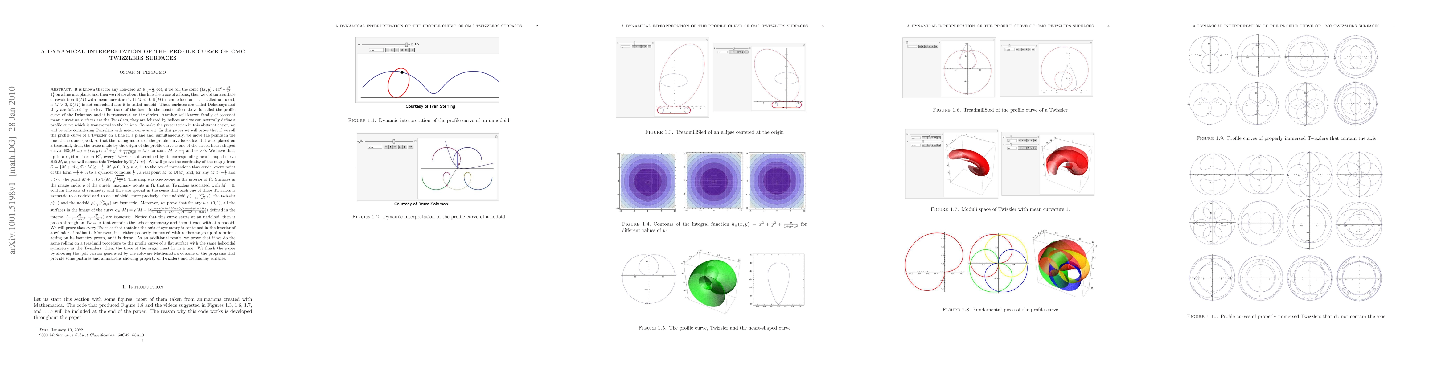 It is known that for any non-zero $M in (-1/4,infty)$, if we roll the conic {(x,y): 4 x^2-y^2/M}=1} on a line in a plane, and then we rotate about this line the trace of a focus, then we obtain a surface of revolution D(M) with mean curvature 1. If M<=0, D(M) is embedded and it is called unduloid, if M>0, D(M) is not embedded and it is called nodoid. These surfaces are called Delaunays and they are foliated by circles. The trace of the focus in the construction above is called the profile curve of the Delaunay and it is transversal to the circles. Another well known family of constant mean curvature surfaces are the Twizzlers, they are foliated by helices and we can naturally define a profile curve which is transversal to the helices. To make the presentation in this abstract easier, we will be only considering Twizzlers with mean curvature 1. In this paper we will prove that if we roll the profile curve of a Twizzler on a line in a plane and, simultaneously, we move the points in the line at the same speed, so that the rolling motion of the profile curve looks like if it were placed on a treadmill, then, the trace made by the origin of the profile curve is one of the closed heart-shaped curves HS(M,w)={(x,y) : x^2+y^2+y/(1+w^2 x^2)=M} for some M>-1/4 and w>0. Using this dynamical interpretation we will prove several properties for Twizzlers