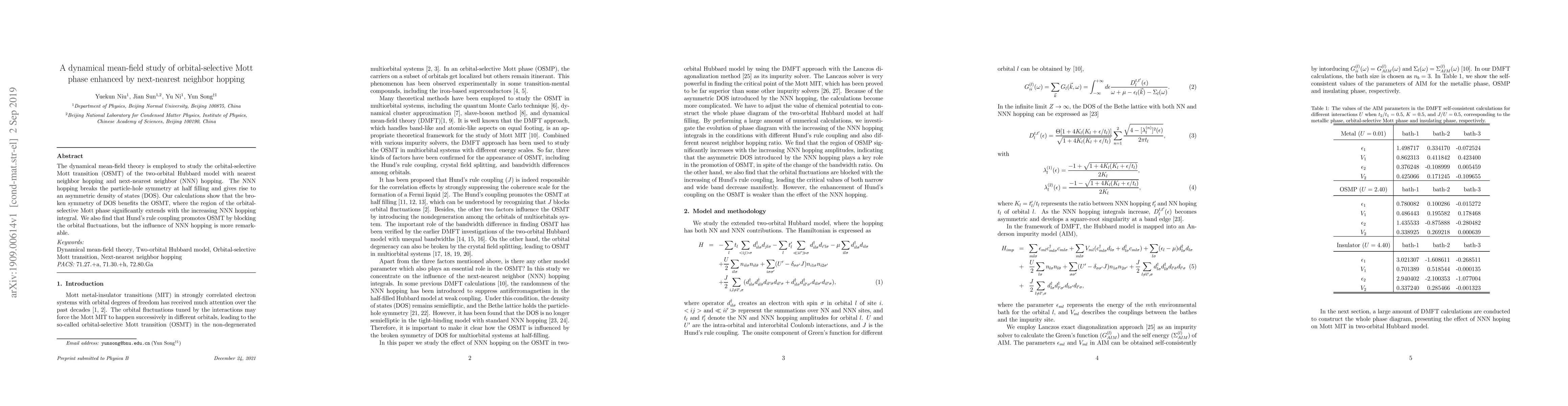 This paper uses dynamical mean-field theory to investigate the orbital-selective Mott transition in a two-orbital Hubbard model, finding that next-nearest neighbor hopping enhances the transition by breaking particle-hole symmetry and extending the orbital-selective Mott phase. Hund's rule coupling also aids the transition, but the effect of next-nearest neighbor hopping is more significant.