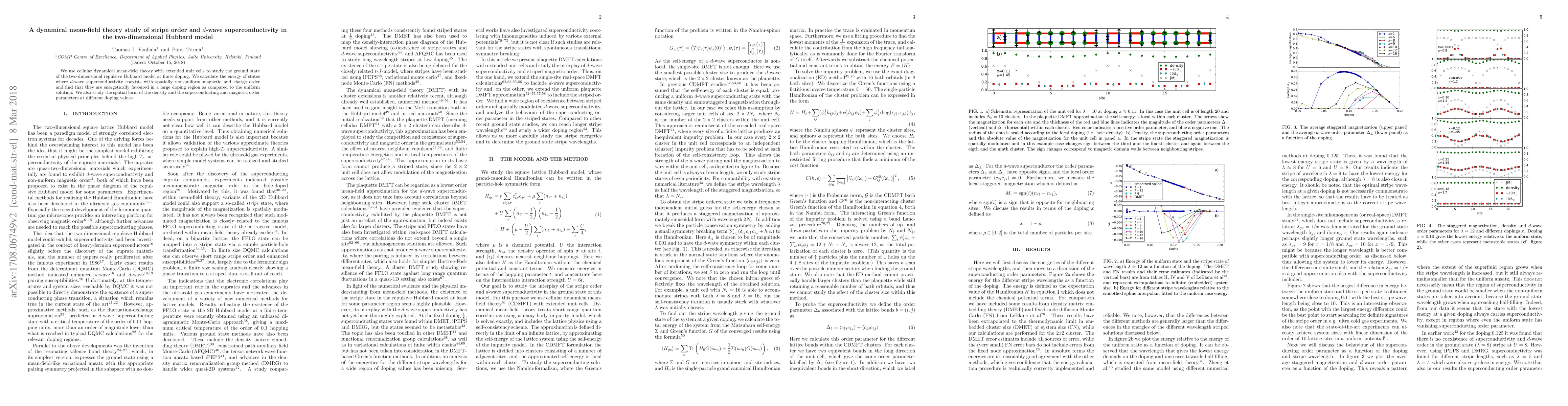 We use cellular dynamical mean-field theory with extended unit cells to study the ground state of the two-dimensional repulsive Hubbard model at finite doping. We calculate the energy of states with d-wave superconductivity coexisting with spatially uniform magnetic order and find that they are energetically favoured in a large doping region as compared to the uniform solution. We study the spatial form of the superconducting and magnetic order parameters at different doping values.
