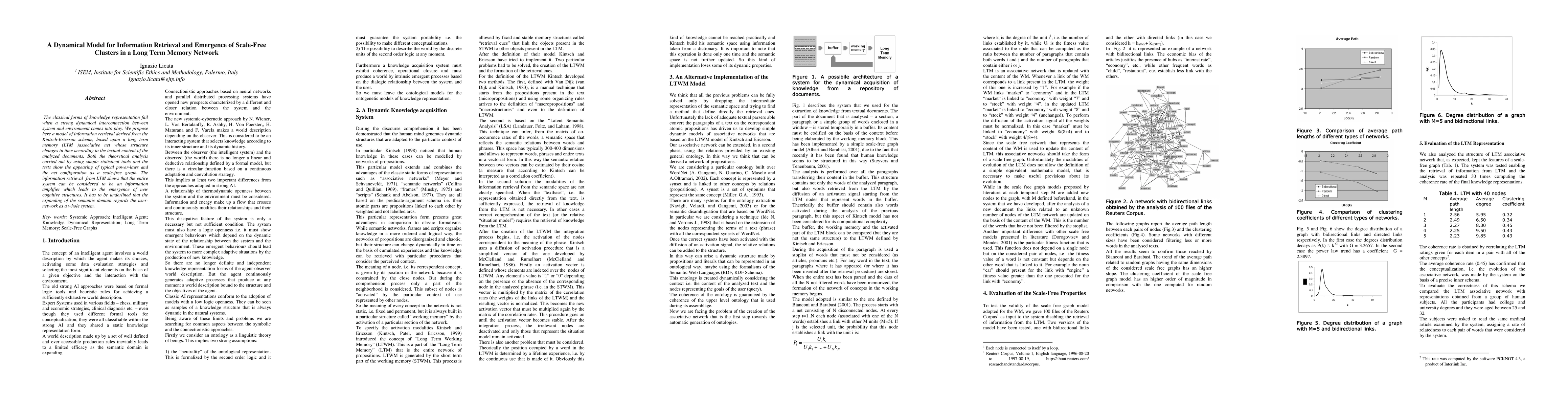 The classical forms of knowledge representation fail when a strong dynamical interconnection between system and environment comes into play. We propose here a model of information retrieval derived from the Kintsch-Ericsson scheme, based upon a long term memory (LTM) associative net whose structure changes in time according to the textual content of the analyzed documents. Both the theoretical analysis carried out by using simple statistical tools and the tests show the appearing of typical power-laws and the net configuration as a scale-free graph. The information retrieval from LTM shows that the entire system can be considered to be an information amplifier which leads to the emergence of new cognitive structures. It has to be underlined that the expanding of the semantic domain regards the user-network as a whole system.