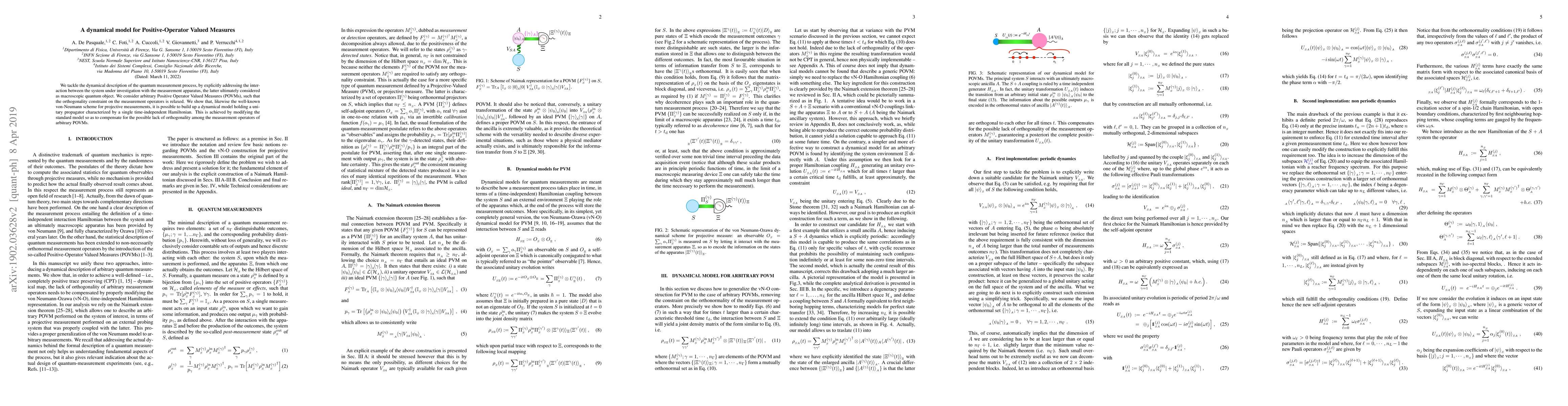 This paper develops a dynamical model for the quantum measurement process using Positive Operator Valued Measures (POVMs), relaxing the orthogonality constraint. It constructs a unitary propagator with a time-independent Hamiltonian to describe interactions between the system and the macroscopic measurement apparatus.