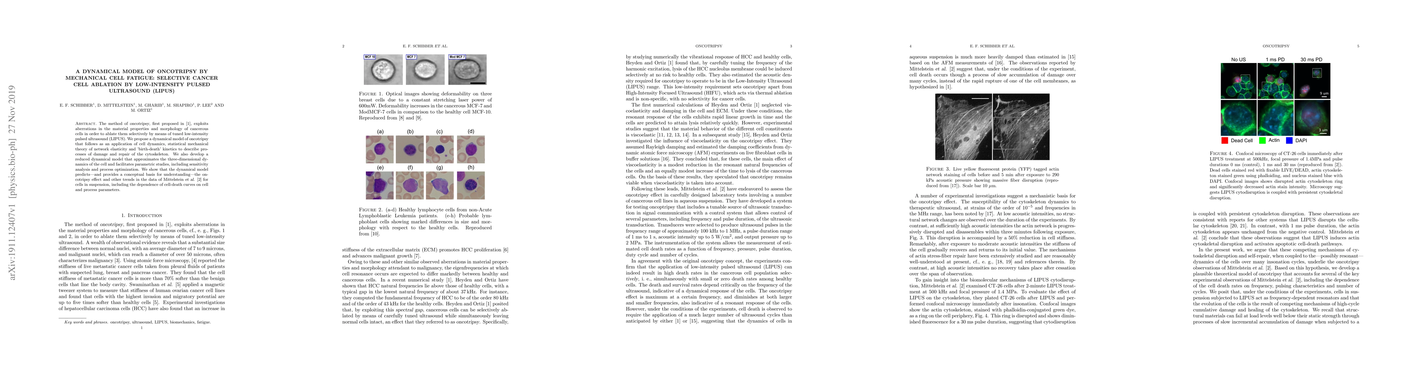 This paper proposes a dynamical model for oncotripsy, a method to selectively ablate cancer cells using low-intensity pulsed ultrasound (LIPUS), based on cell dynamics and statistical mechanics. The model predicts the oncotripsy effect and provides insights into the selective destruction of cancer cells, validated by experimental data.